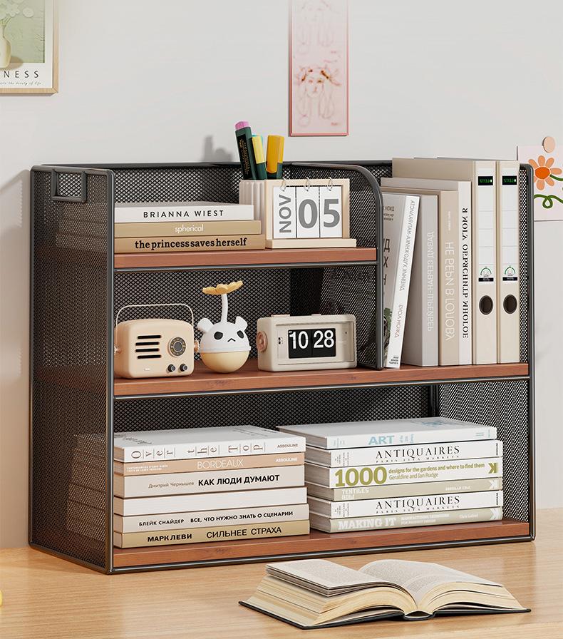 Estante de almacenamiento de escritorio Estante de almacenamiento de escritorio para el hogar Artefacto de acabado de oficina Escritorio Estantería de libros de varias capas Estante de capas de hierro