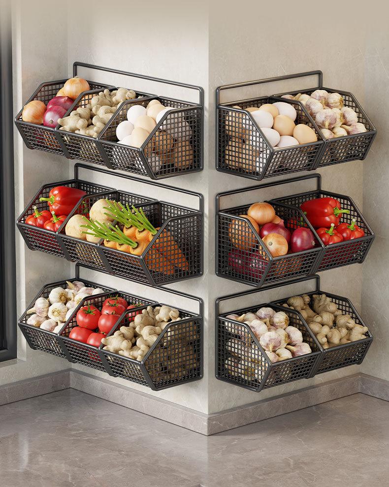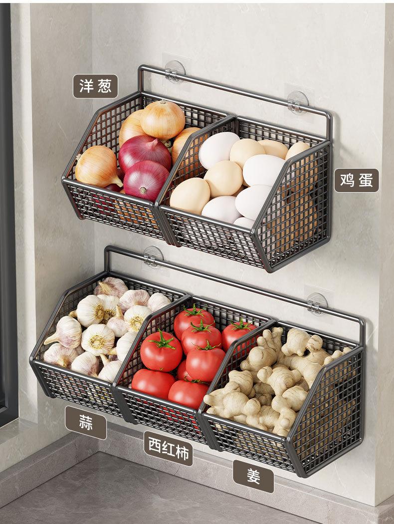 Caja de Almacenamiento para Cebollín, Jengibre y Ajo Pared Cesta Colgante Pequeña Cesta de Almacenamiento Cocina Jengibre y Ajo Colgante de Pared Estante de Almacenamiento Multifuncional para Condimentos