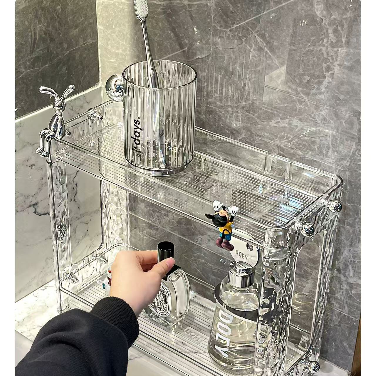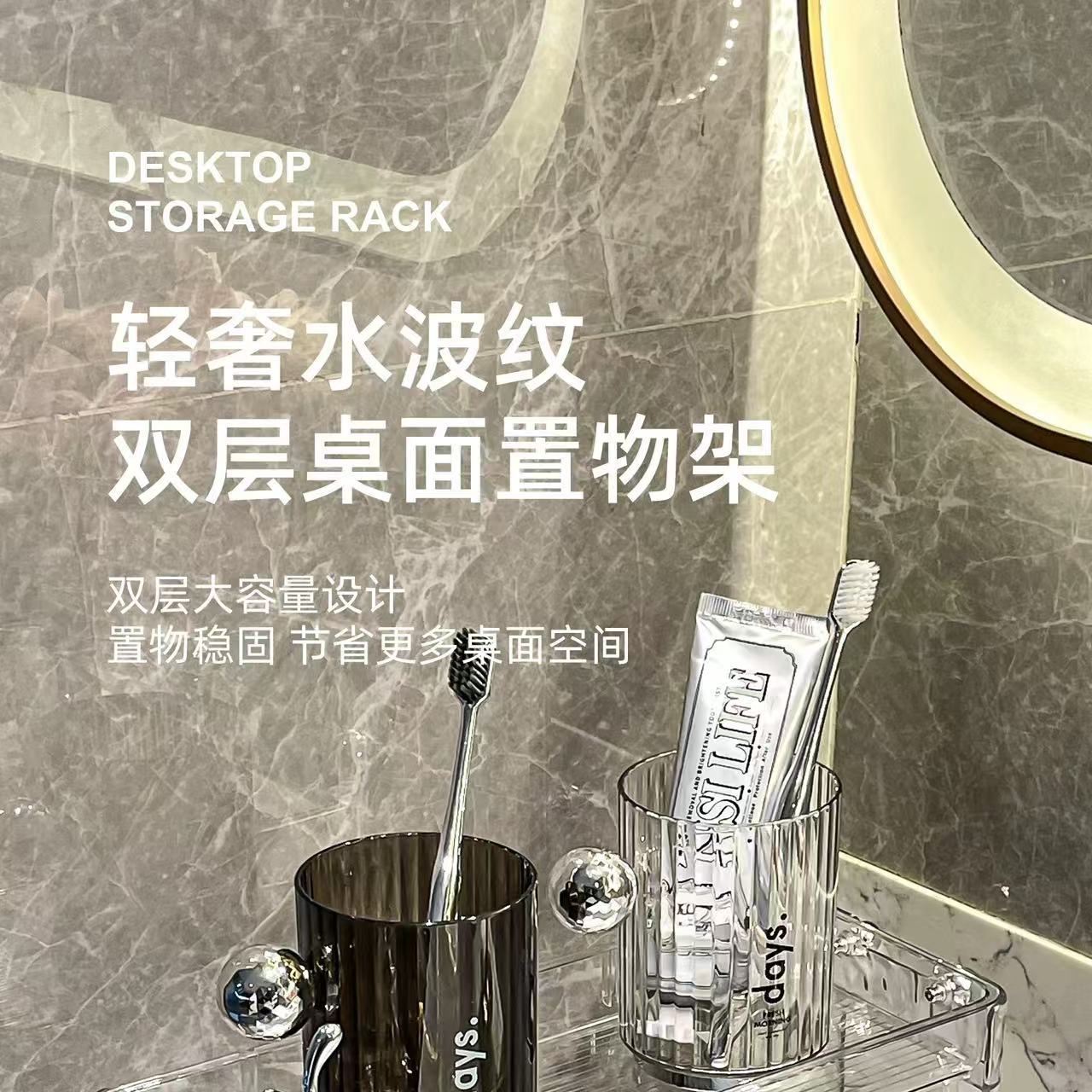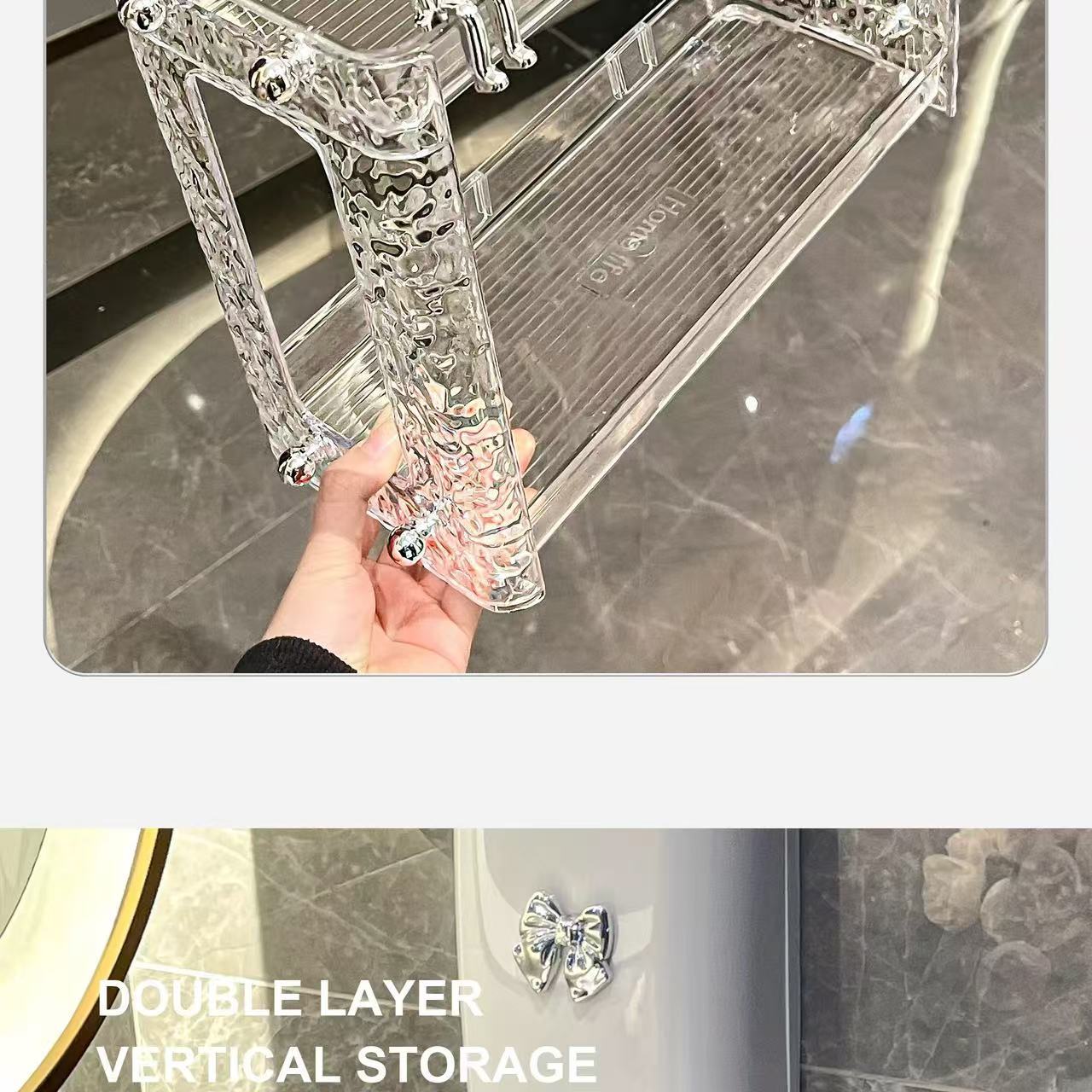 Estante de almacenamiento de baño ligero y lujoso, para mesa de lavado, caja de almacenamiento, mesa de lavabo de baño, estante cosmético de doble capa