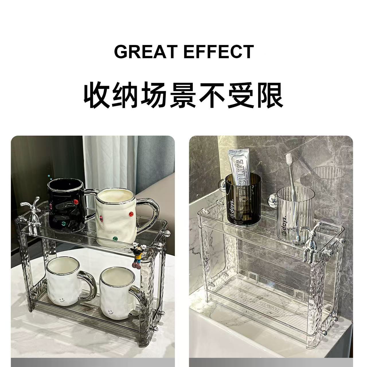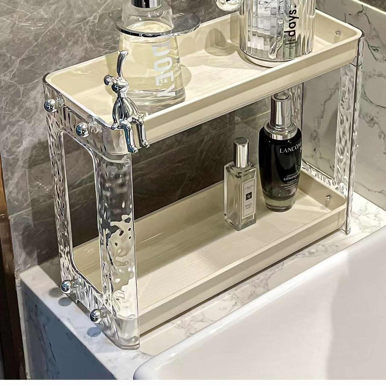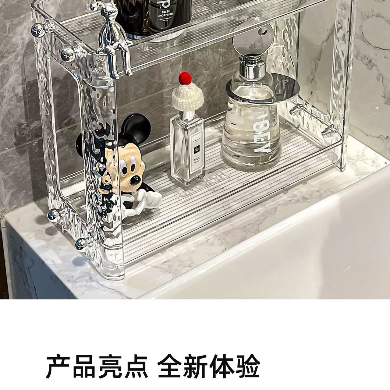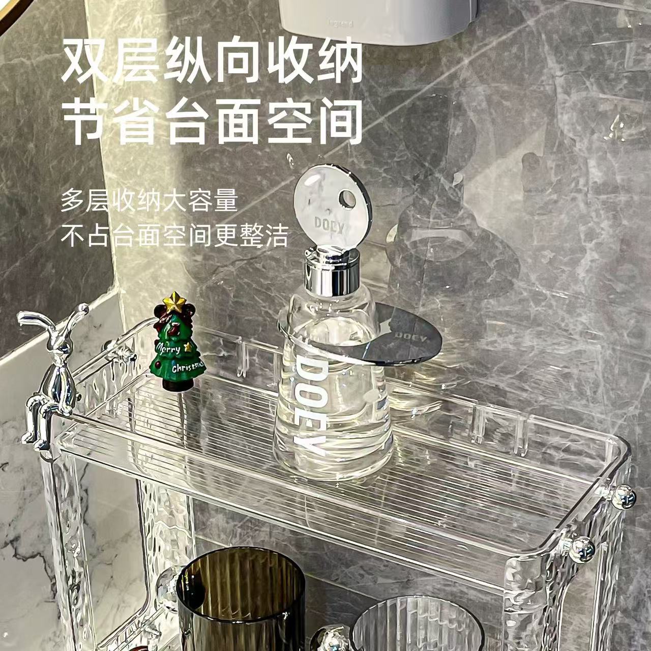 Estante de almacenamiento de baño ligero y lujoso, para mesa de lavado, caja de almacenamiento, mesa de lavabo de baño, estante cosmético de doble capa