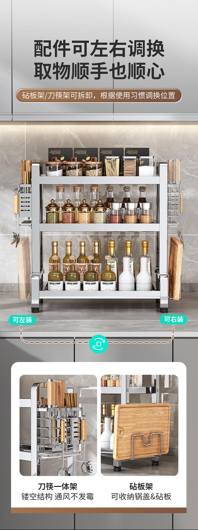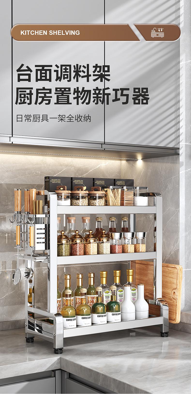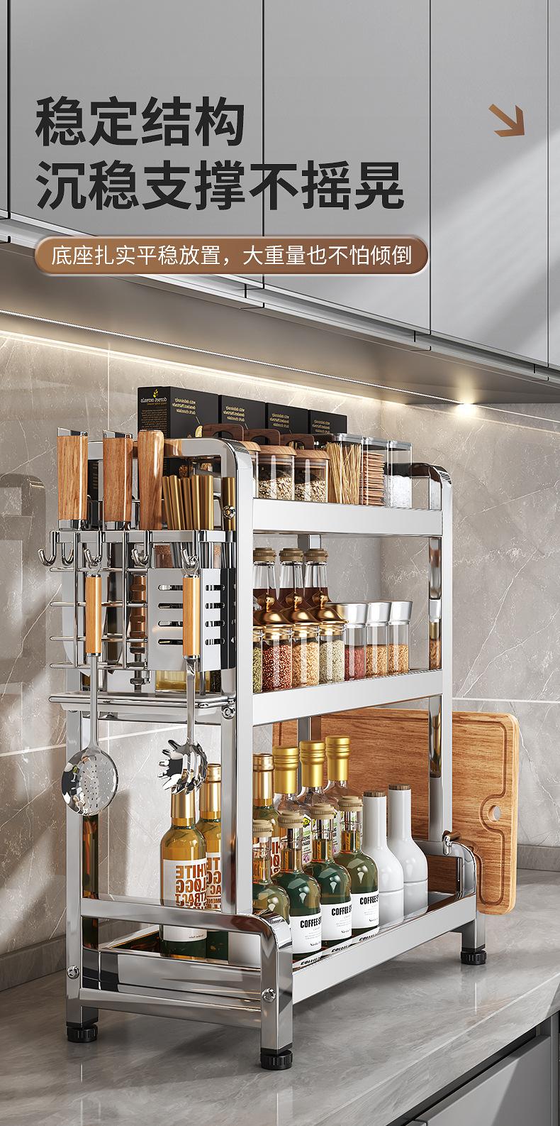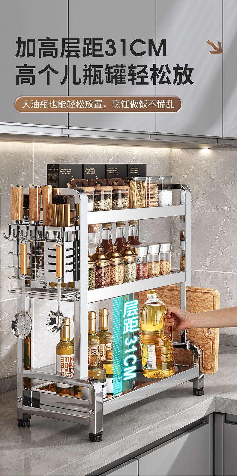 Estante de condimentos de cocina, estante de almacenamiento de acero inoxidable, estante para condimentos, soporte para cuchillos en capas, palillos, tabla de cortar, estante de almacenamiento para encimera