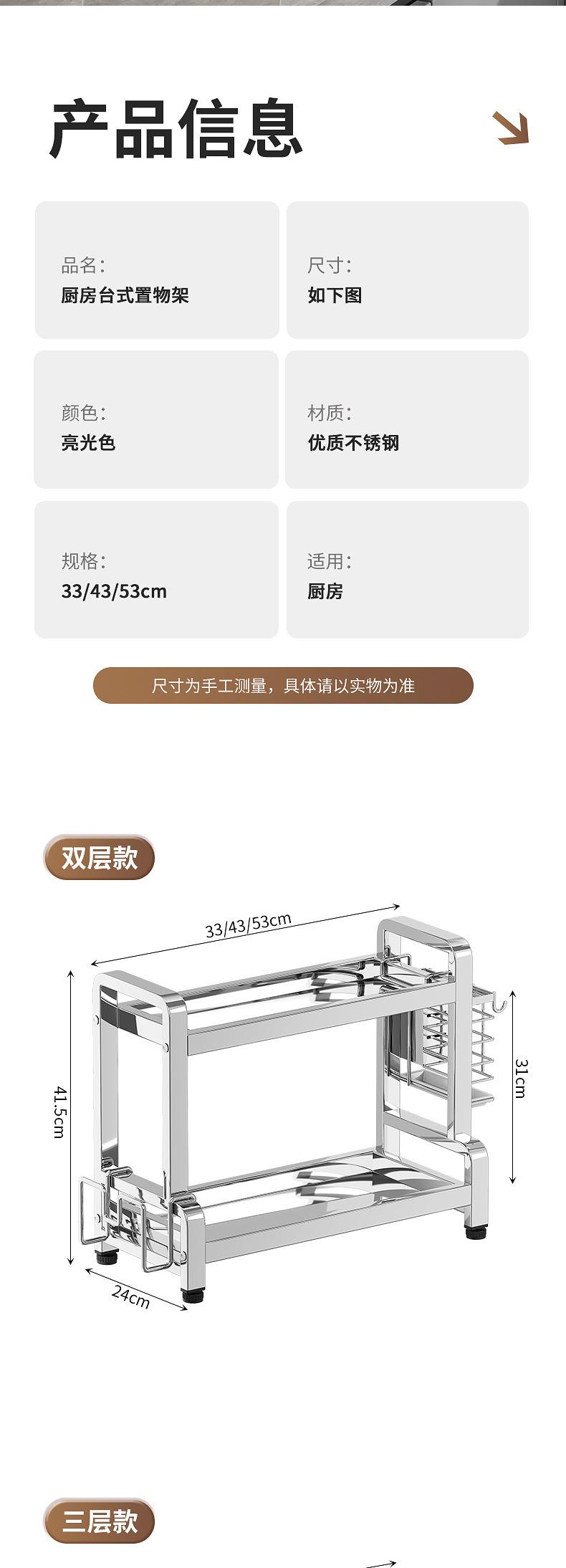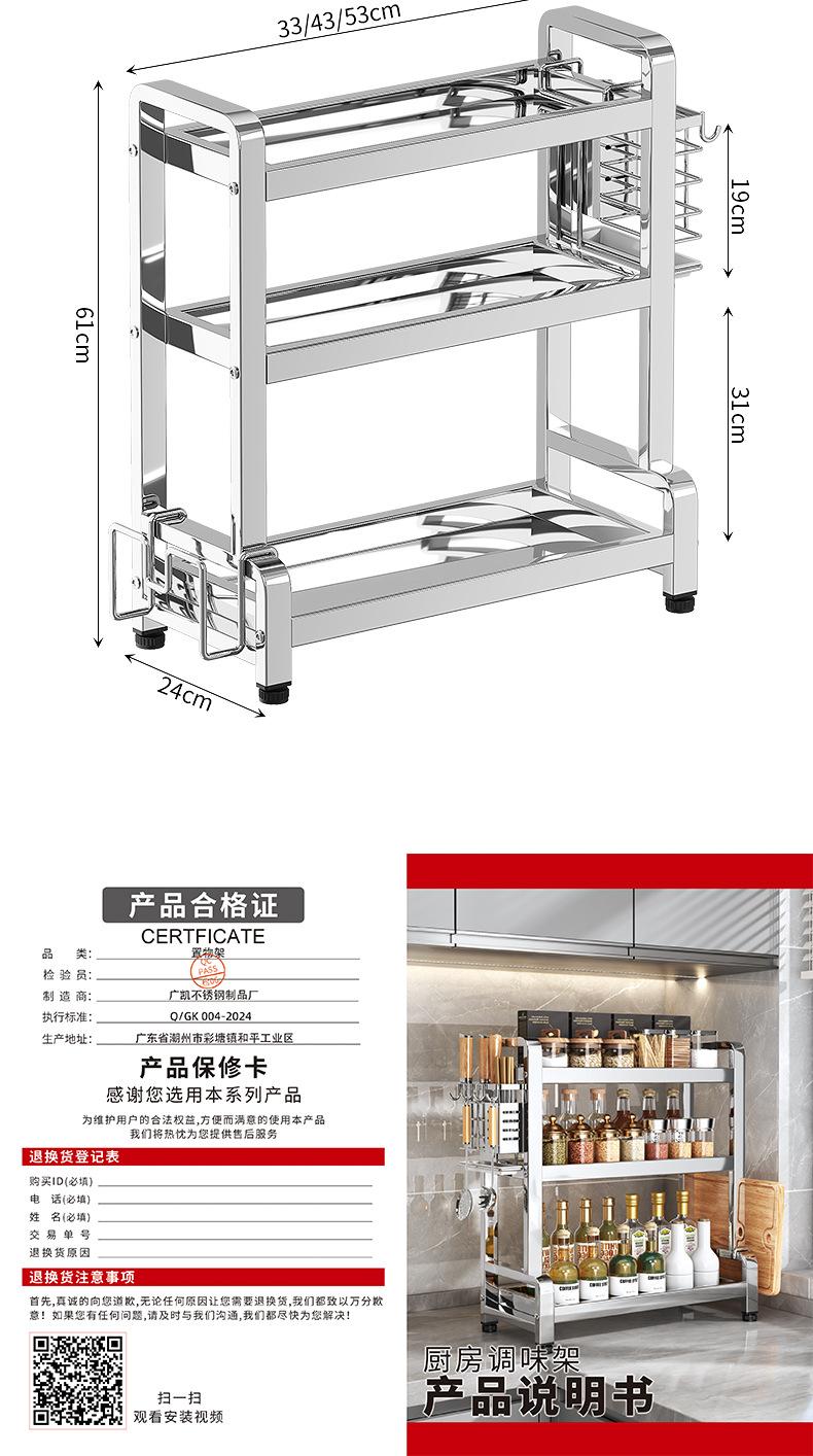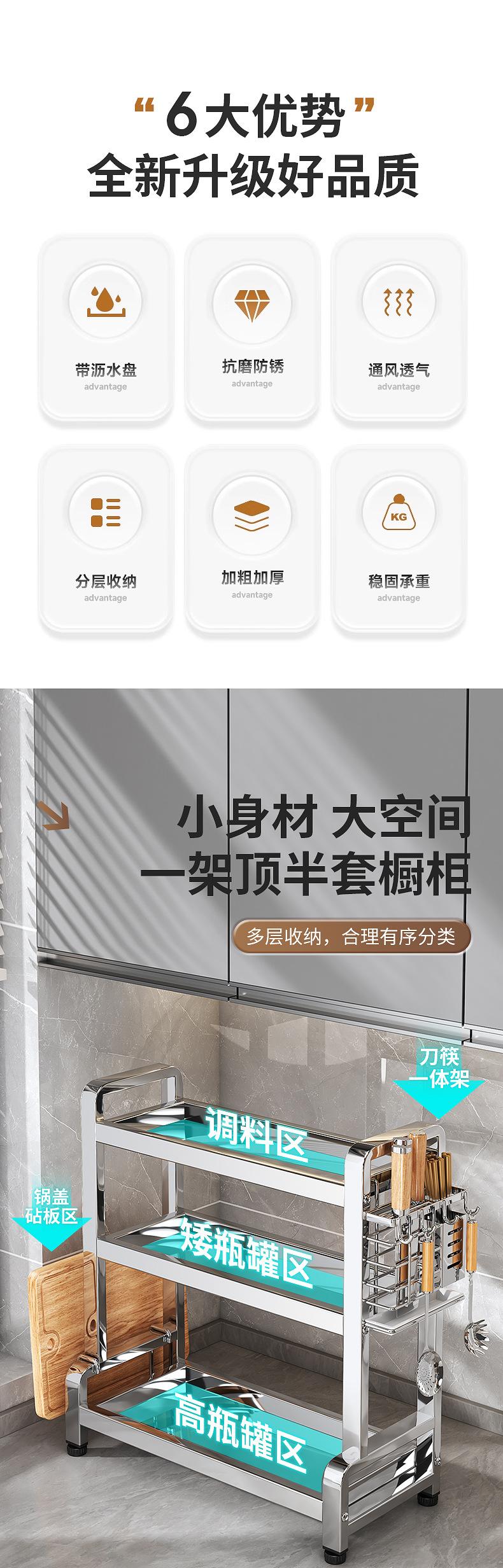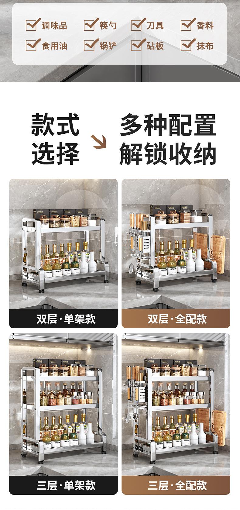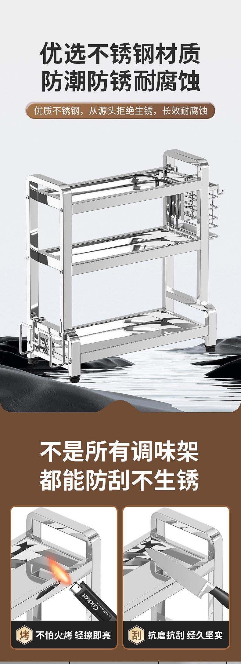 Estante de condimentos de cocina, estante de almacenamiento de acero inoxidable, estante para condimentos, soporte para cuchillos en capas, palillos, tabla de cortar, estante de almacenamiento para encimera