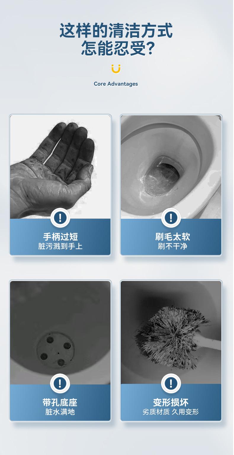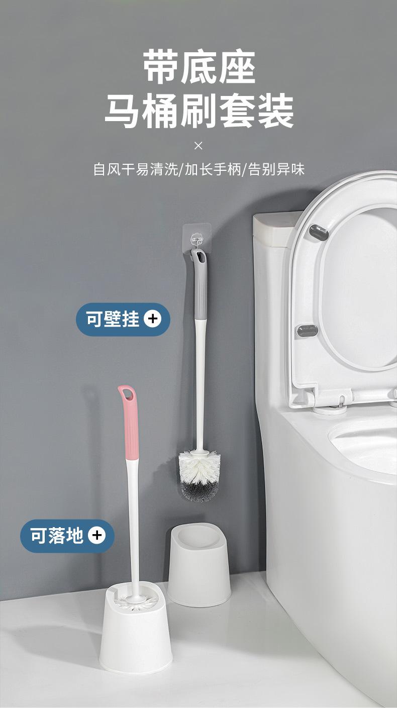 Cepillo de Inodoro Doméstico con Base Cepillo de Inodoro sin Ángulo Muerto Cepillo de Inodoro sin Perforación Mango Largo Montado en la Pared Traje de Cepillo de Limpieza