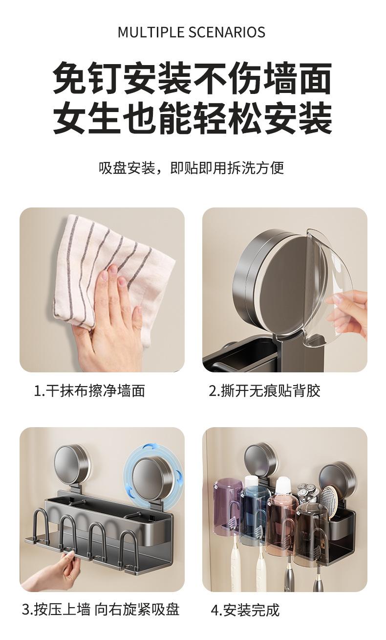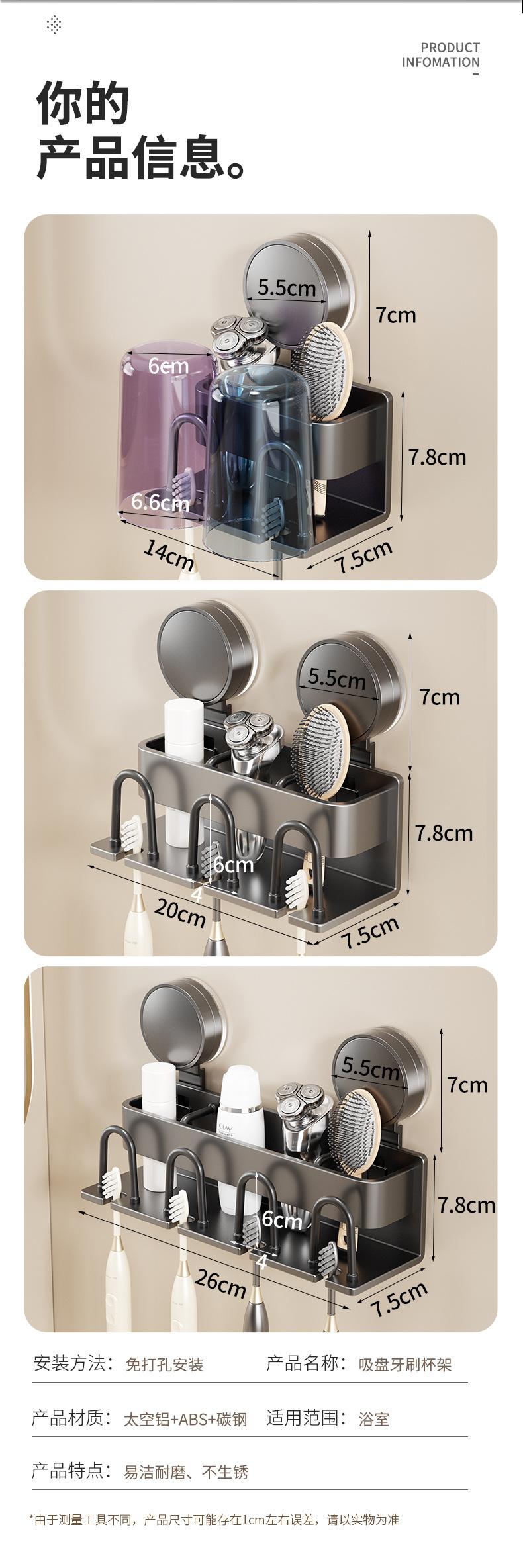 Suction cup toothbrush holder-gun gray 2 mouths, Suction cup toothbrush holder-gun gray 3 mouths, Suction cup ...