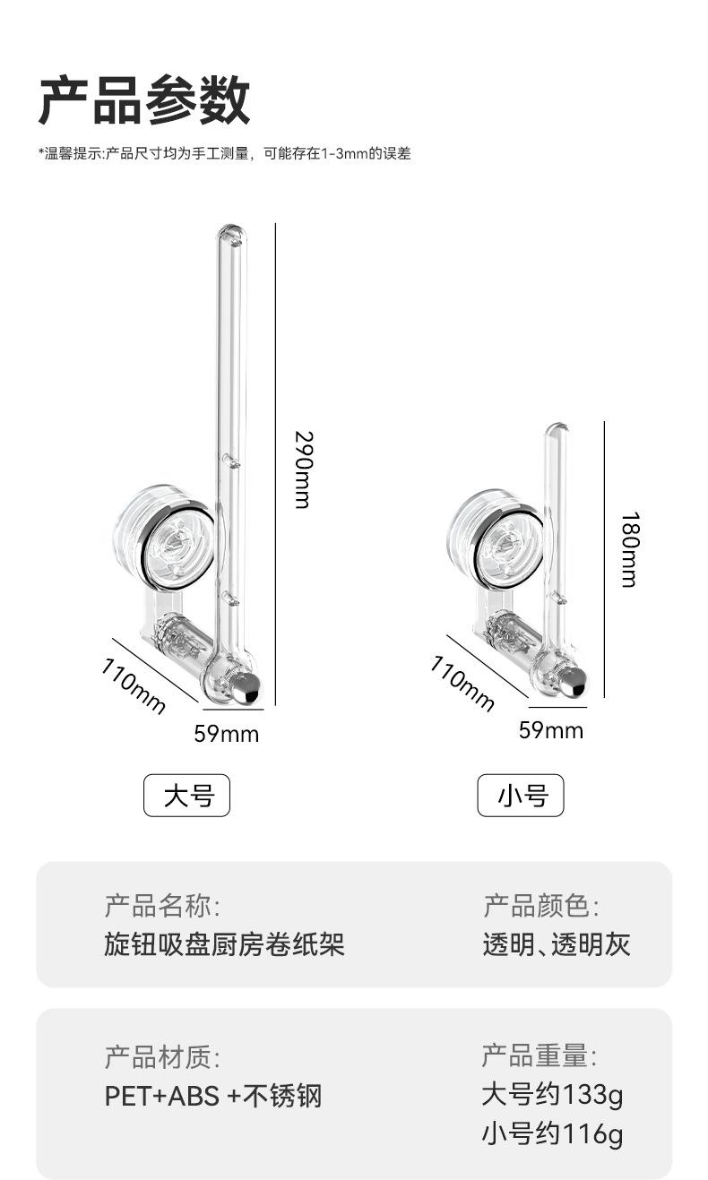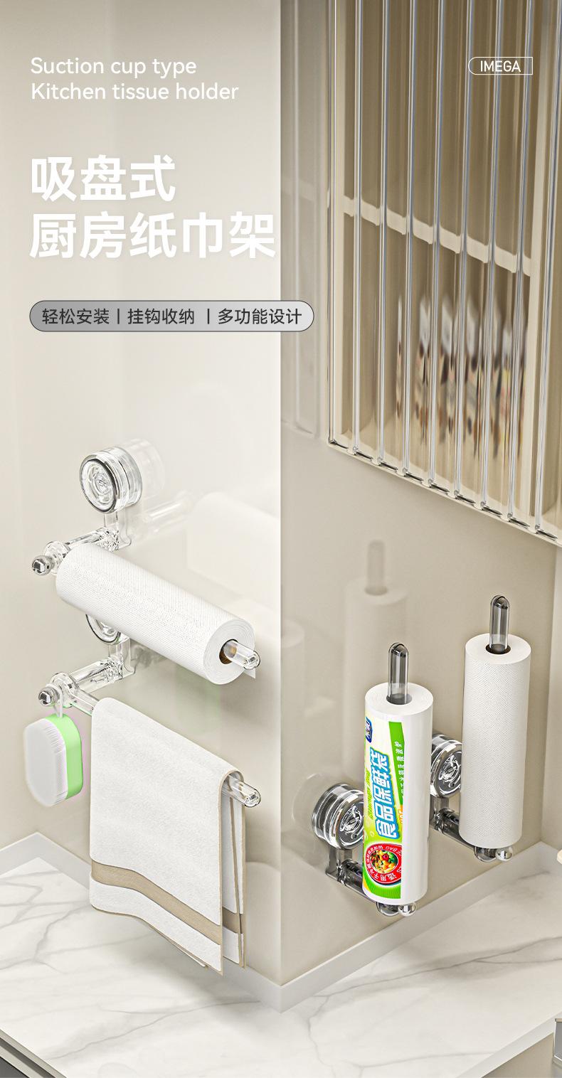 Knob suction cup kitchen roll paper holder-short-transparent, Knob suction cup kitchen paper holder-short-gray...