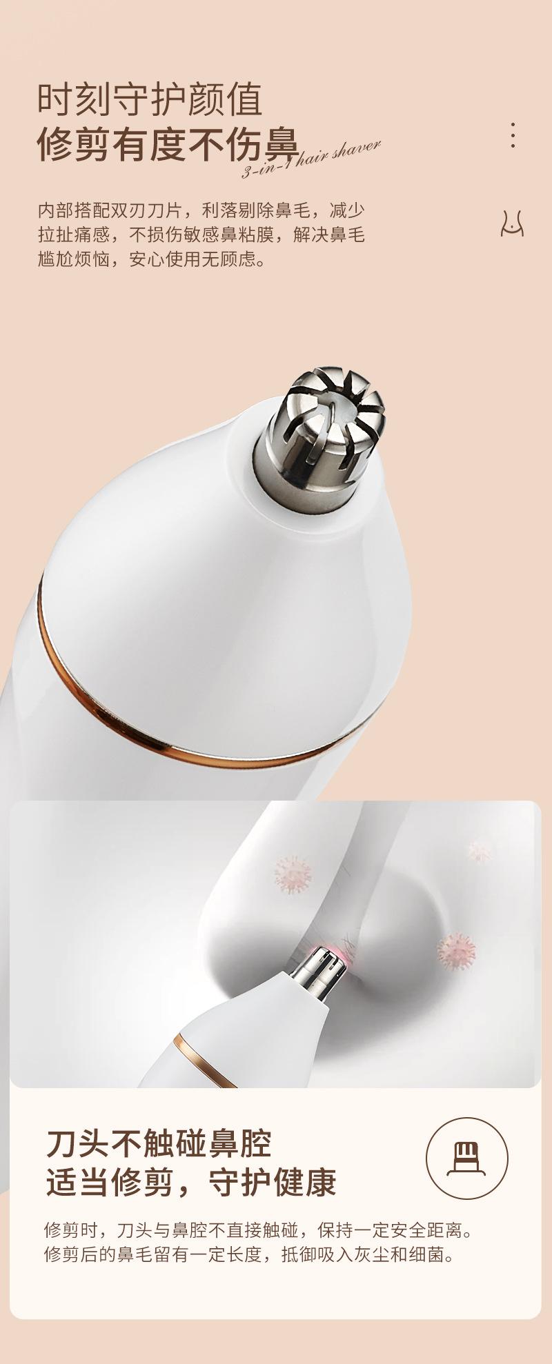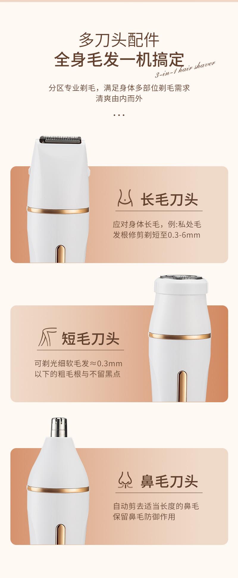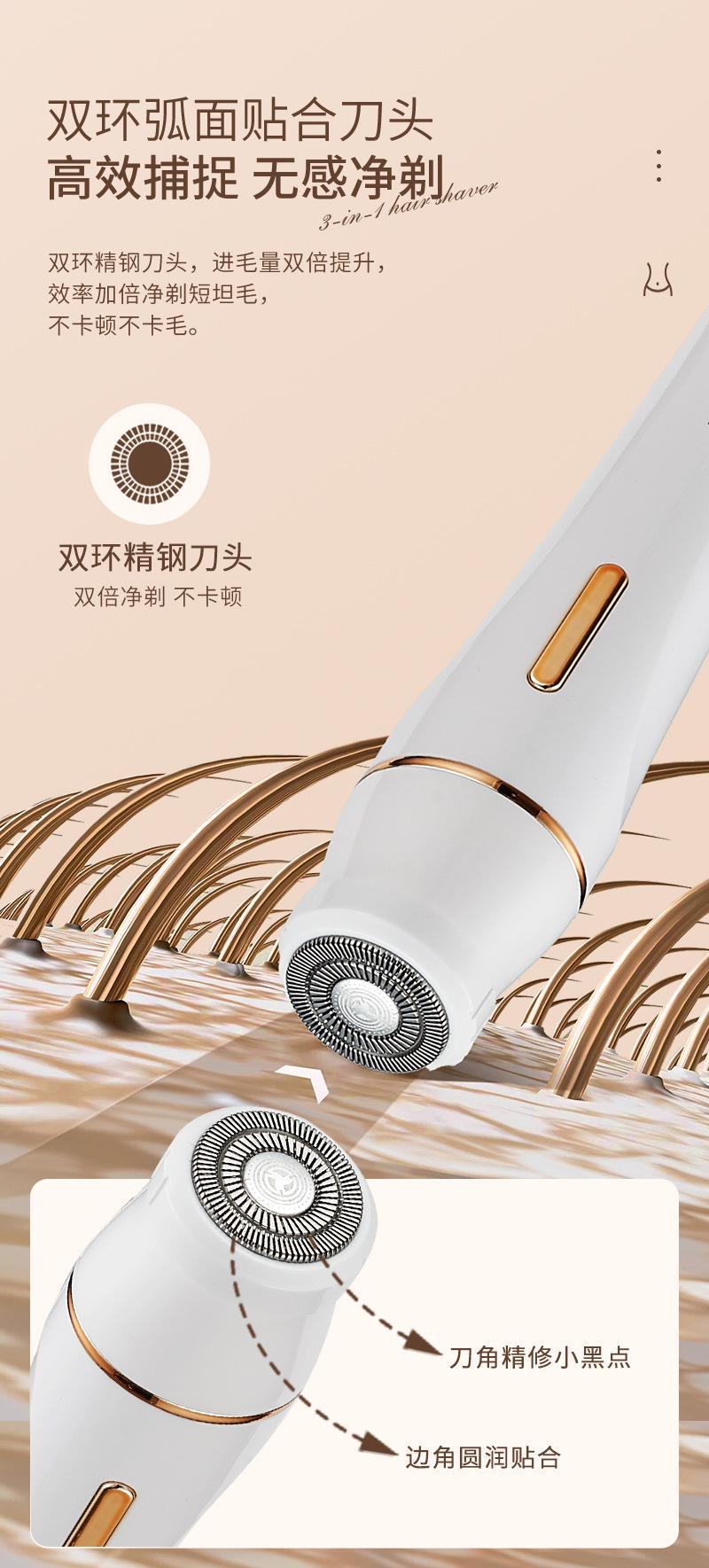 Nuevo instrumento de depilación y lijado para mujeres, dispositivo para afeitar el vello púbico, herramienta para afeitar y recortar partes privadas, cortador eléctrico de vello nasal tres en uno