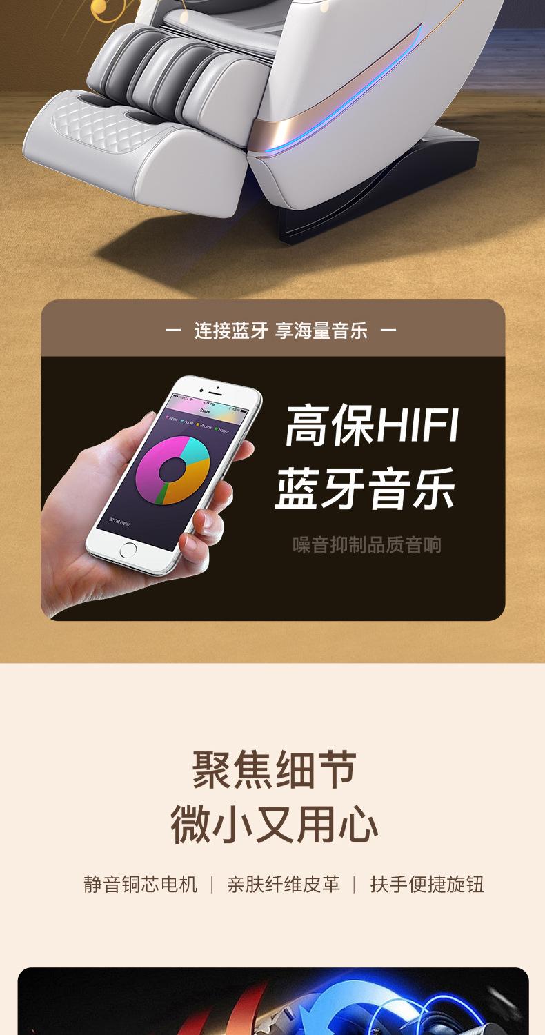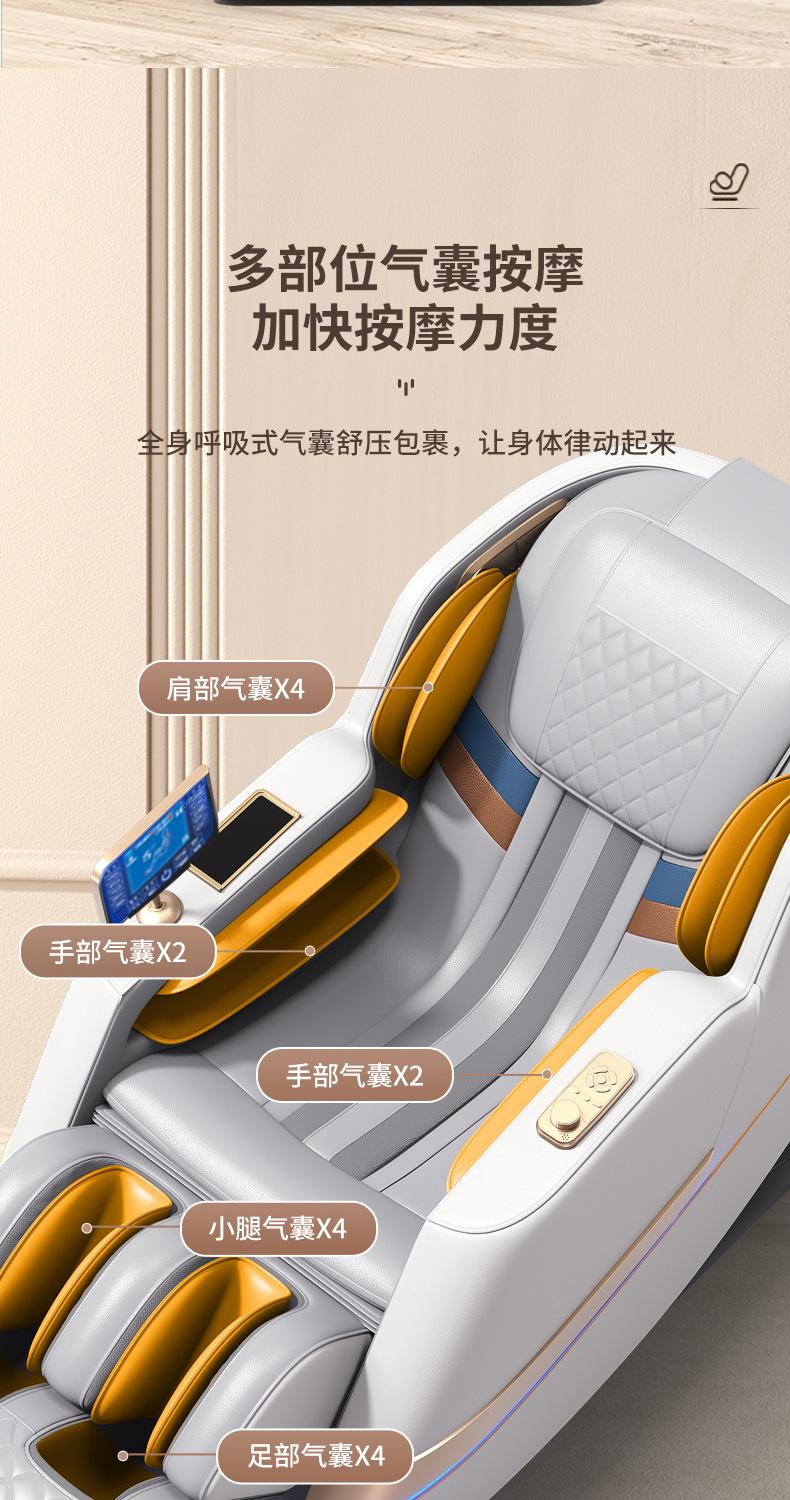 As-188 white and gray model [three major control systems + dual sl rails + wireless charging + zero gravity + bluetooth music + 6-head kneading on the sole of the foot + hot compress on the lower back]
