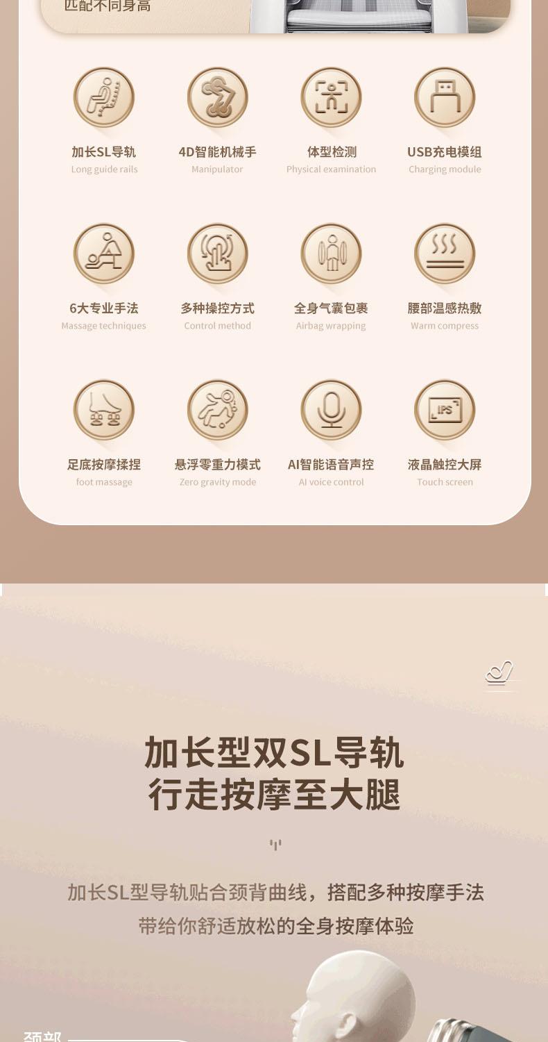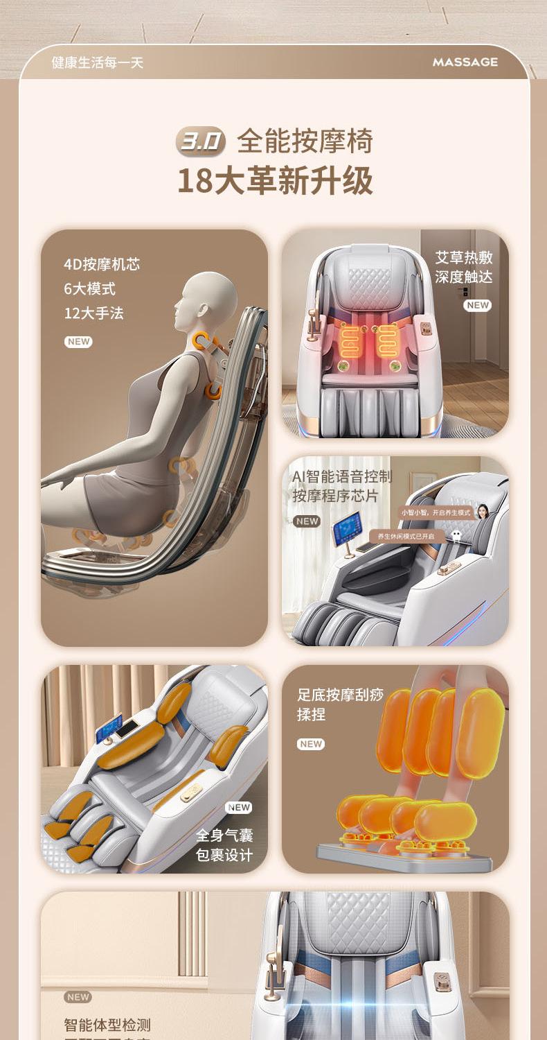 As-188 white and gray model [three major control systems + dual sl rails + wireless charging + zero gravity + ...