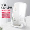 Espejo de maquillaje LED con luz de relleno, plegable, para mujer, estilo de celebridad de Internet, para estudiantes, pequeño espejo portátil de escritorio para dormitorio.