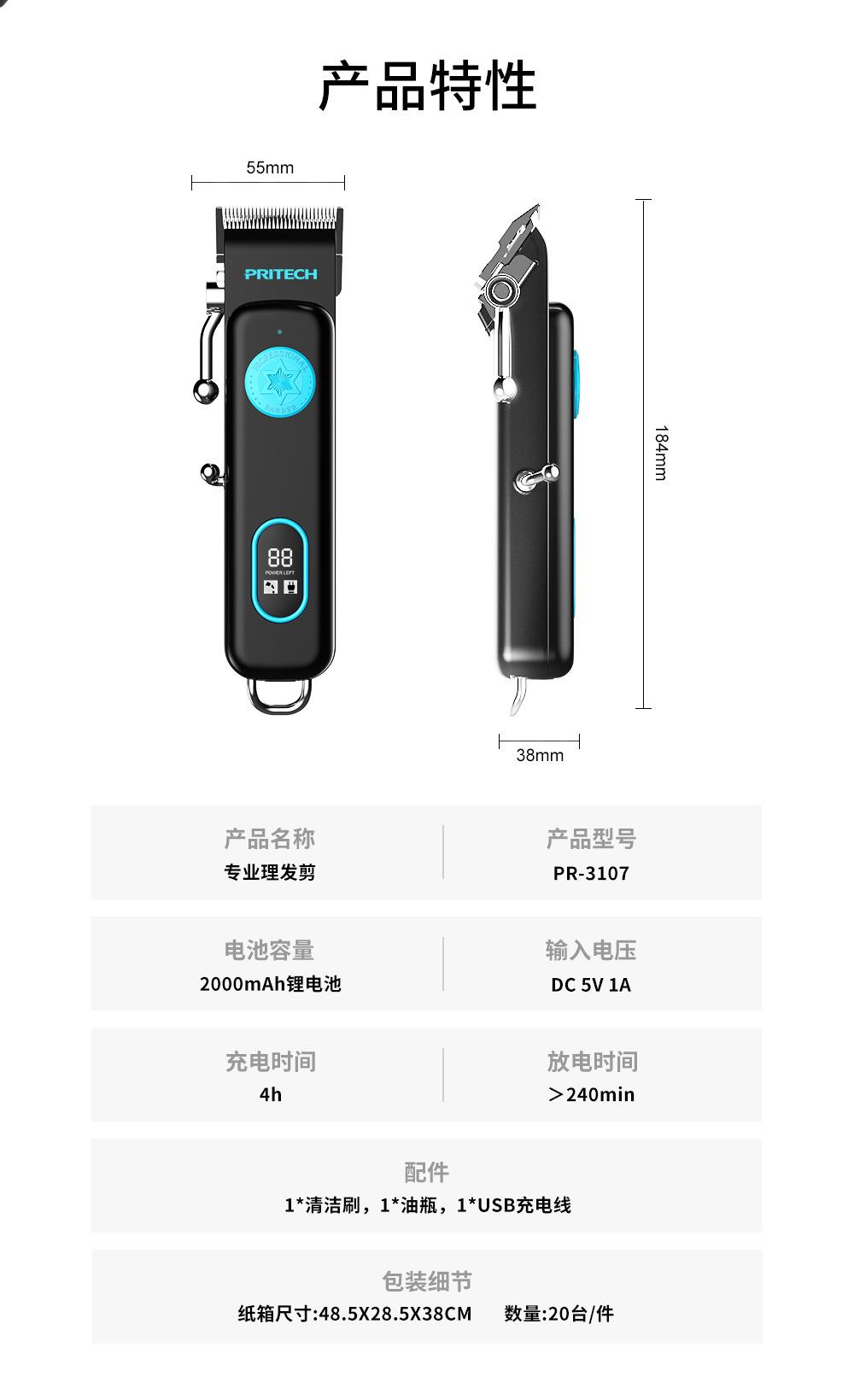 PRITECH - Cortadora eléctrica profesional para uso doméstico, para peluquería, ajustable, para afeitar el cabello