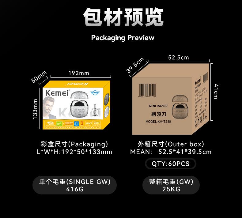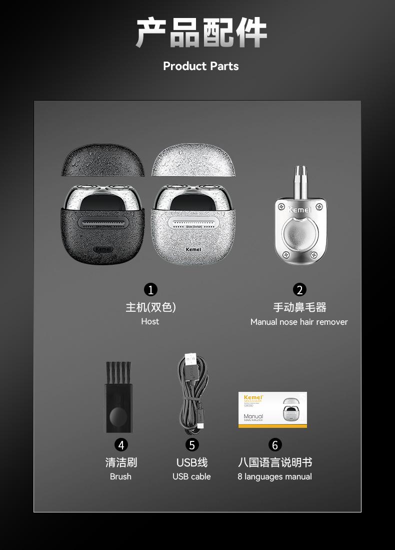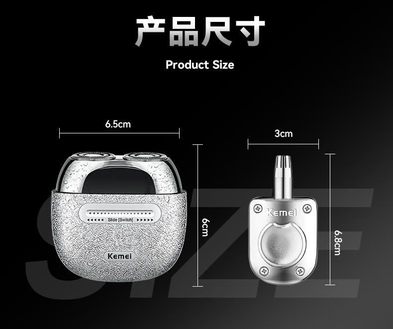 Afeitadora Eléctrica Mini Kemei Portátil Cabezal Magnético Afeitadora Impermeable con Set Recortador de Vello Nasal