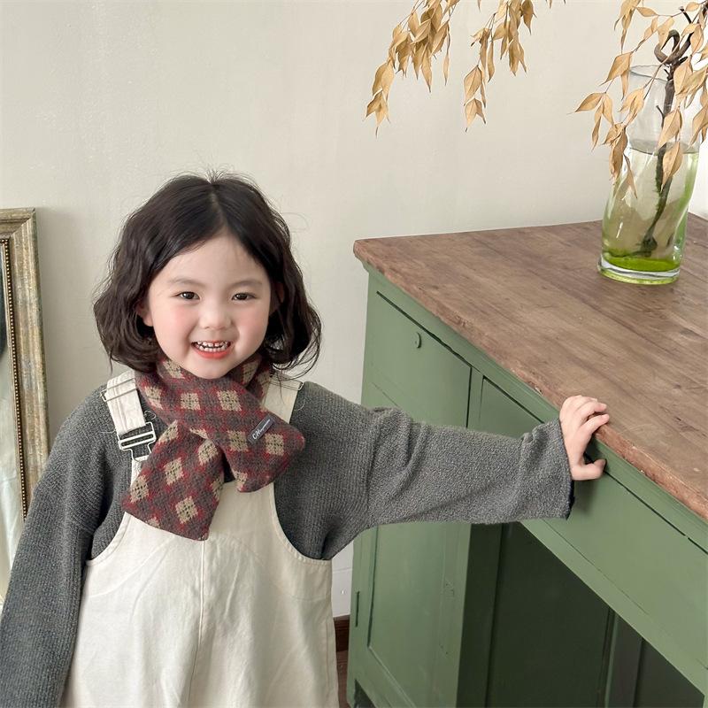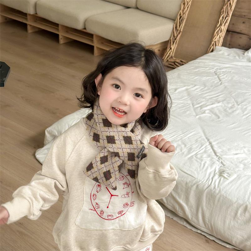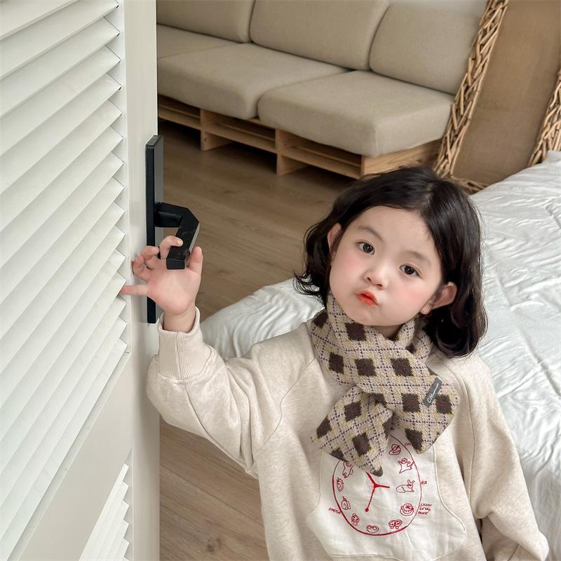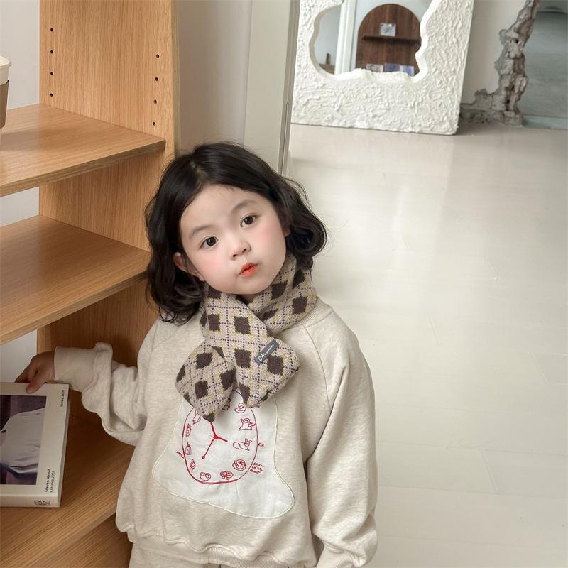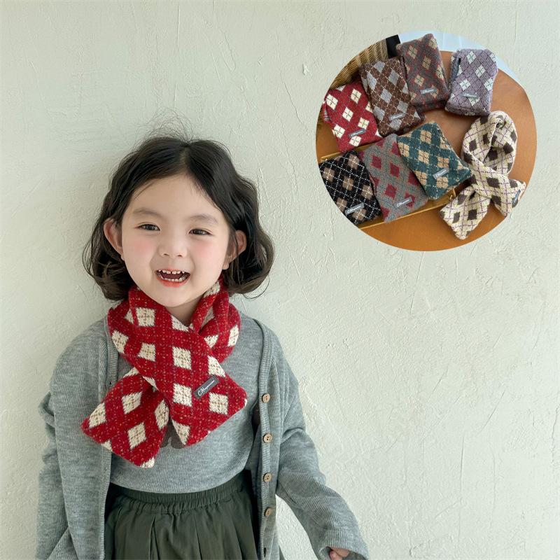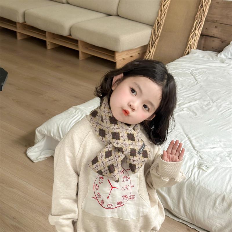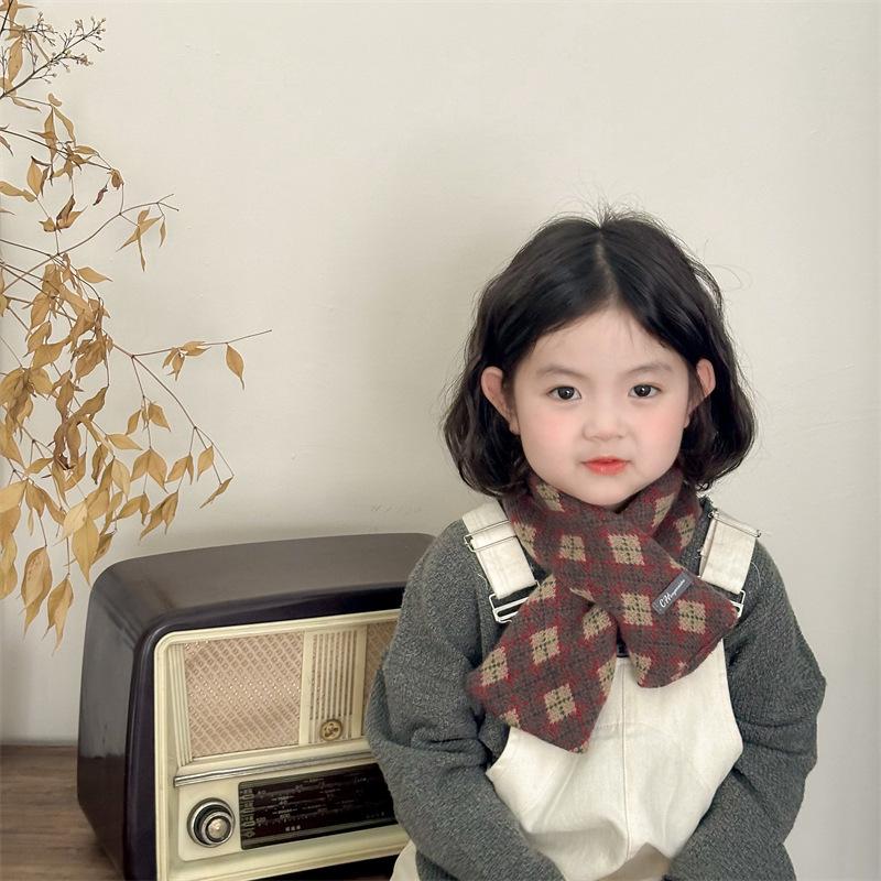 Bufanda de punto para niños de estilo coreano, bufanda cruzada a cuadros retro para niños y niñas, estilo occidental, combina con todo, cuello cálido para bebés de otoño e invierno.