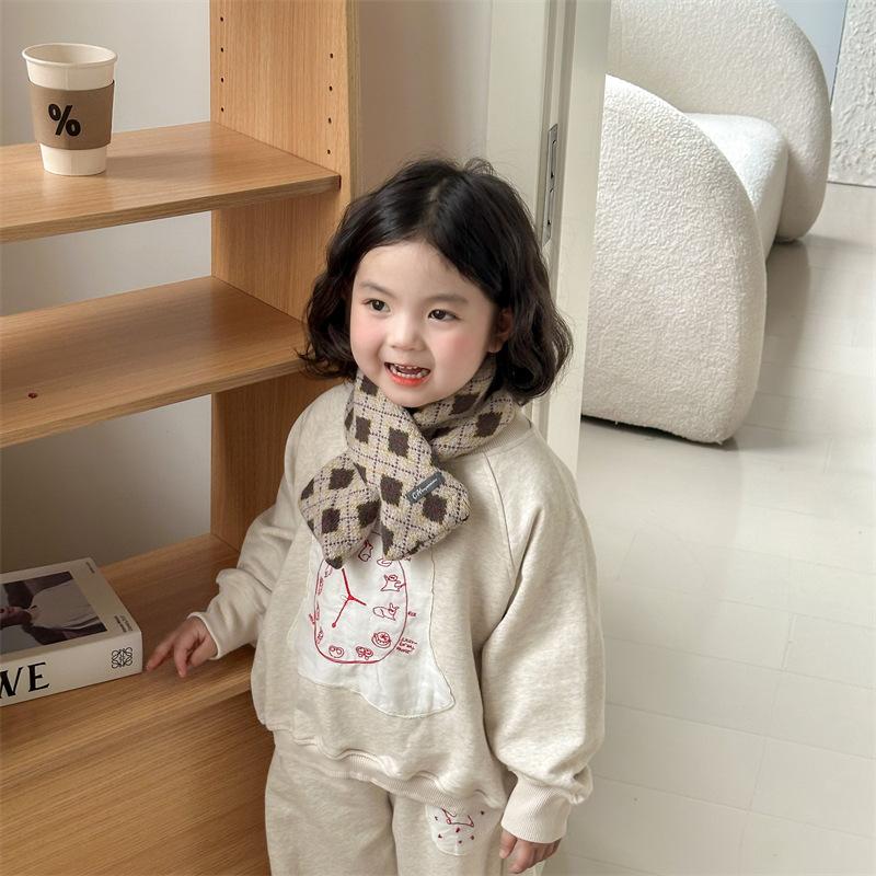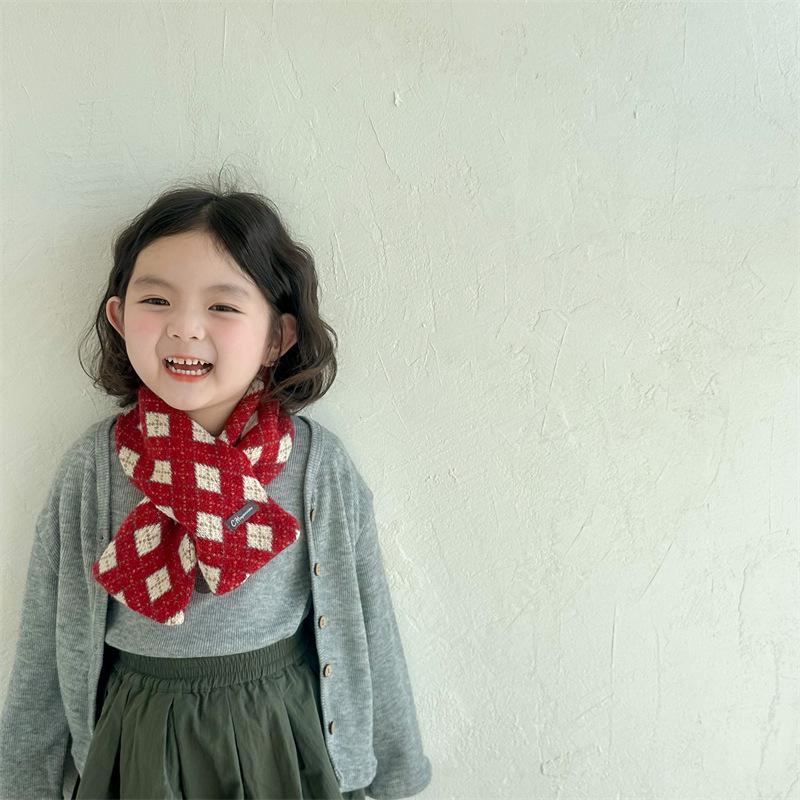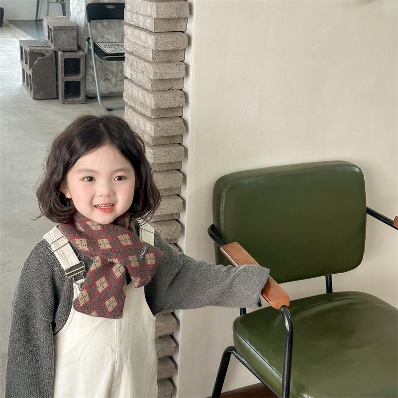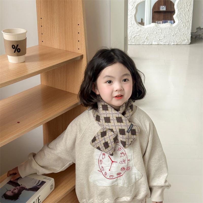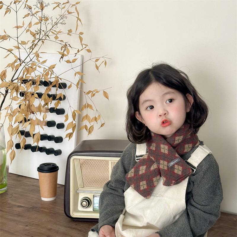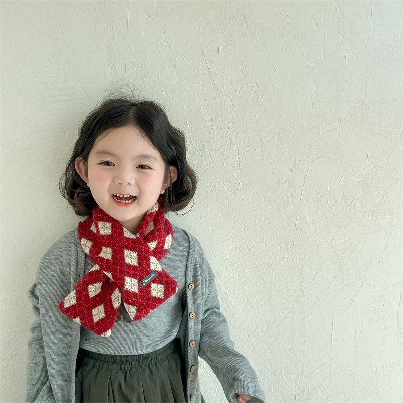 Bufanda de punto para niños de estilo coreano, bufanda cruzada a cuadros retro para niños y niñas, estilo occidental, combina con todo, cuello cálido para bebés de otoño e invierno.