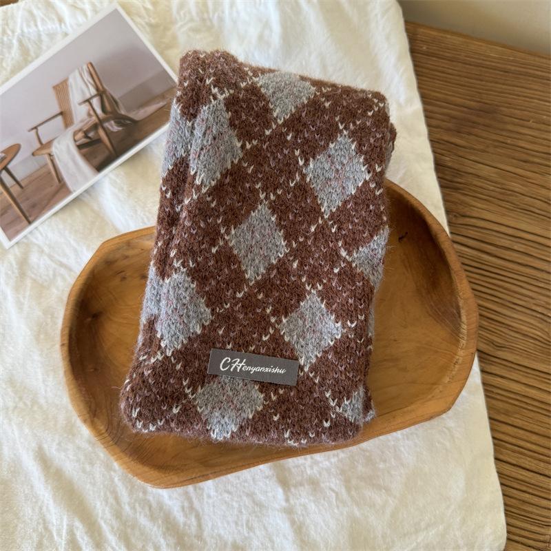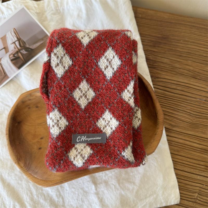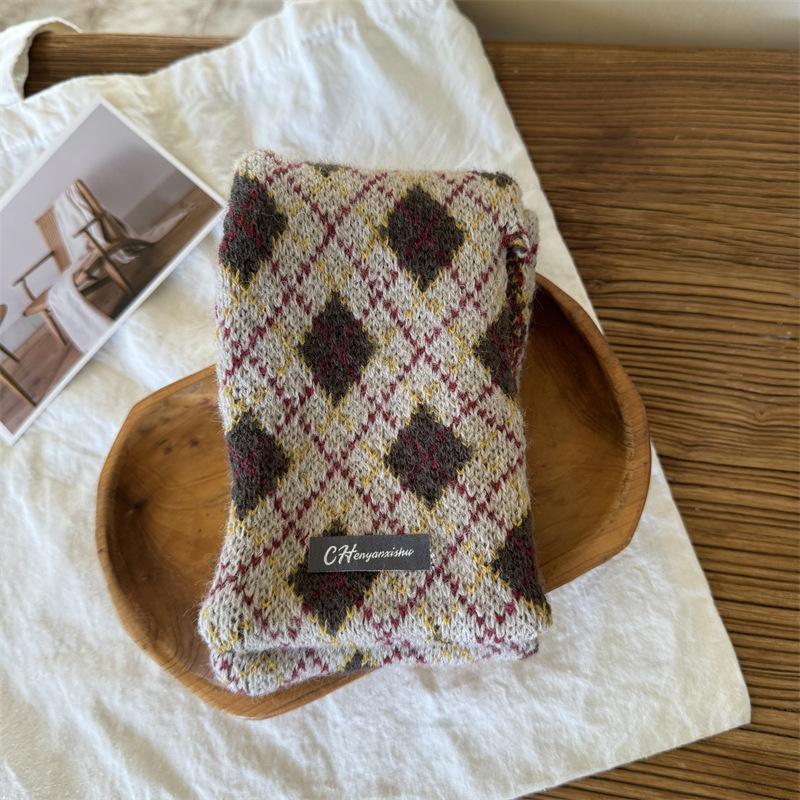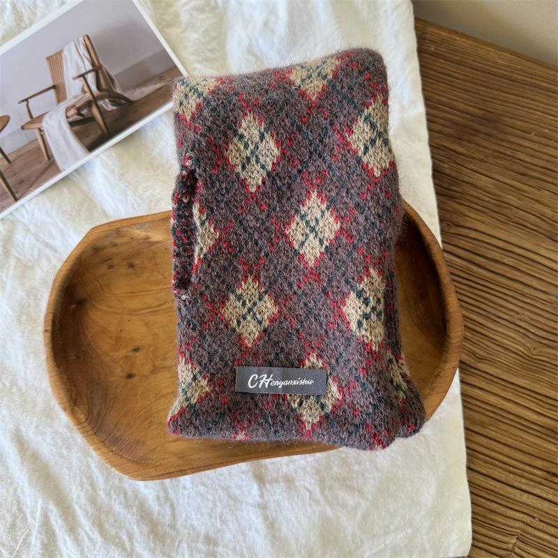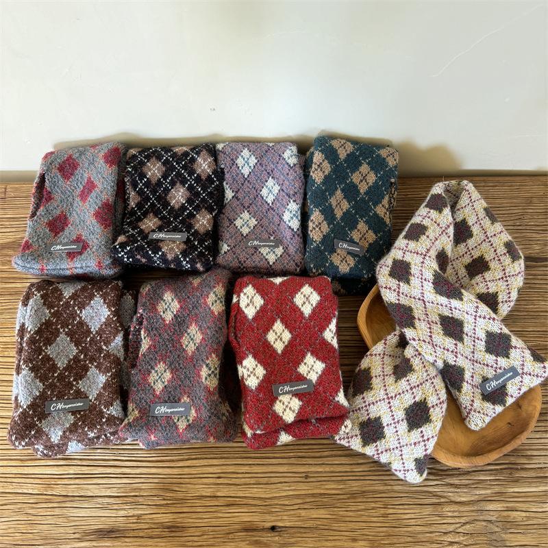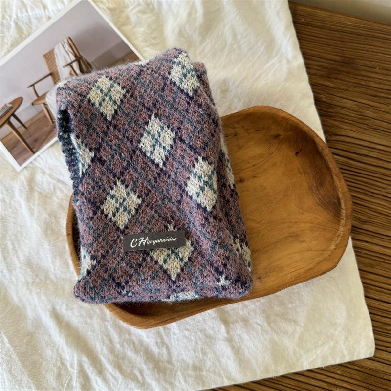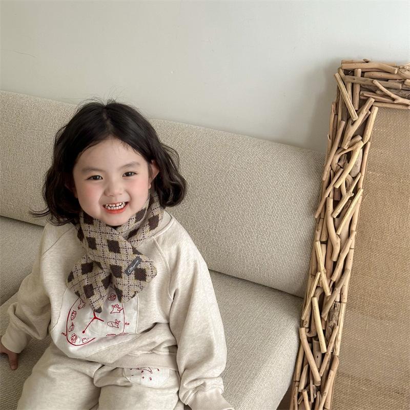 Bufanda de punto para niños de estilo coreano, bufanda cruzada a cuadros retro para niños y niñas, estilo occidental, combina con todo, cuello cálido para bebés de otoño e invierno.