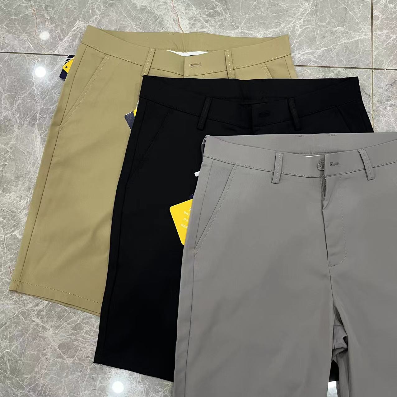 ¡Tela de sarga lavada! Pantalones cortos rectos de verano transpirables y microelásticos para hombre, informales, de negocios, de color liso