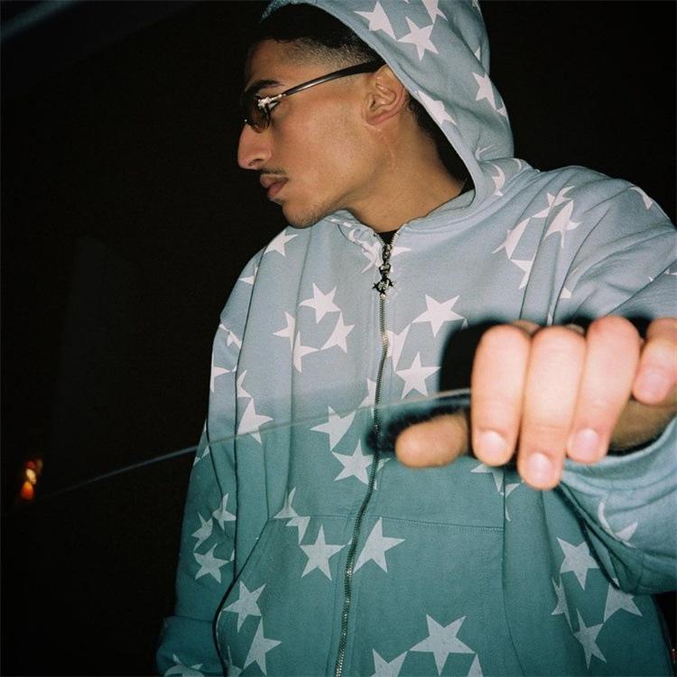 Nuevo Otoño e Invierno Estilo Europeo y Americano Unisex Estampado de Estrella Casual Moda Cárdigan Sudadera con Capucha para Pareja Venta al por Mayor