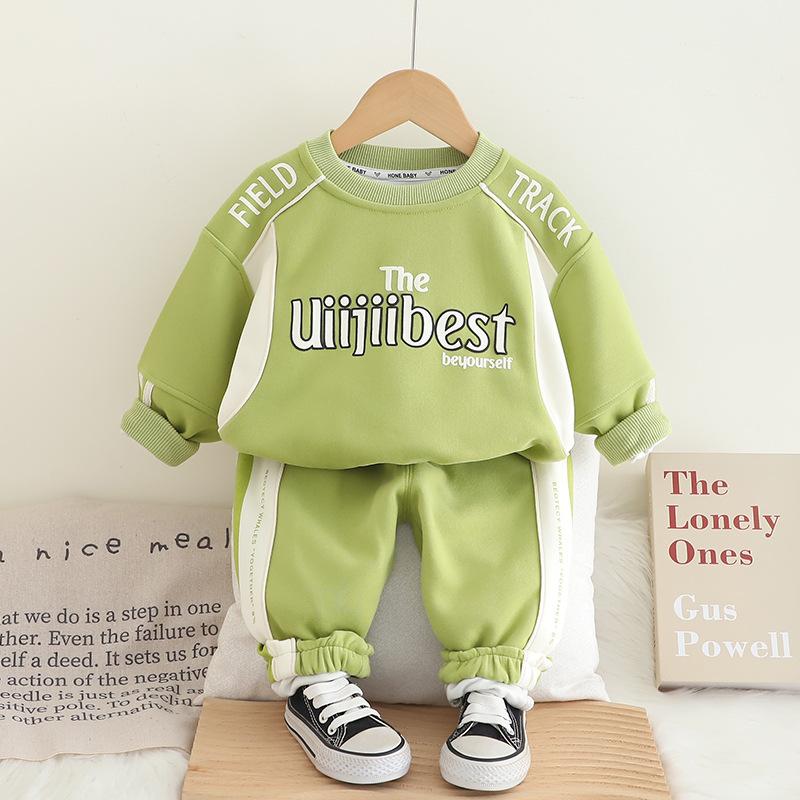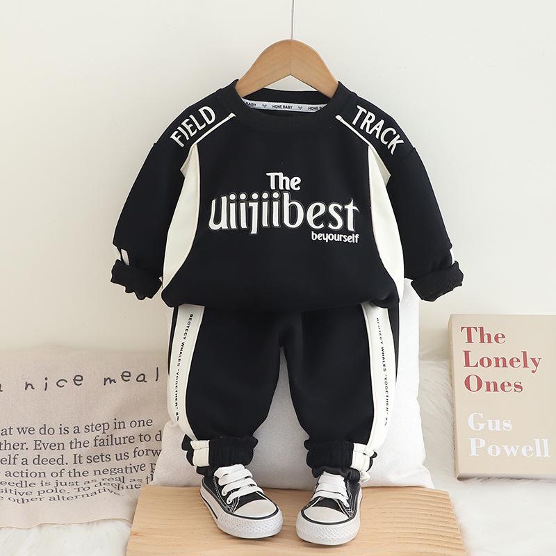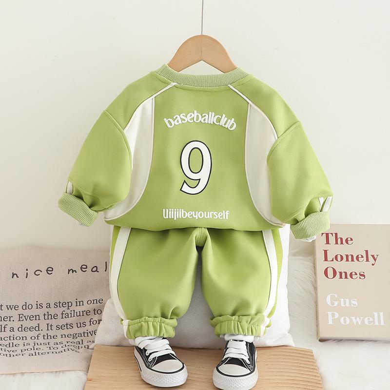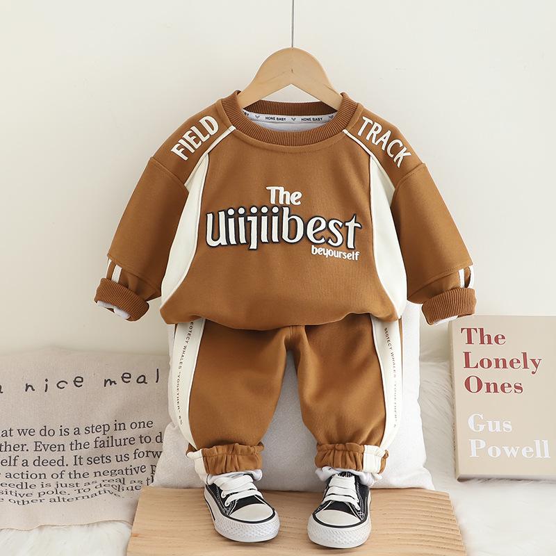 Traje de manga larga de primavera para niño 2025 Nuevo chándal de dos piezas de moda para bebé y niño