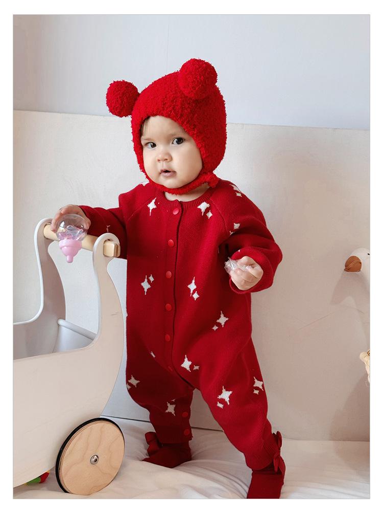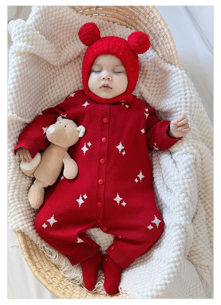 Ropa de Bebé Año Nuevo Otoño e Invierno Mameluco Tejido para Niños y Niñas Recién Nacido Festivo Ropa Infantil de Año Nuevo