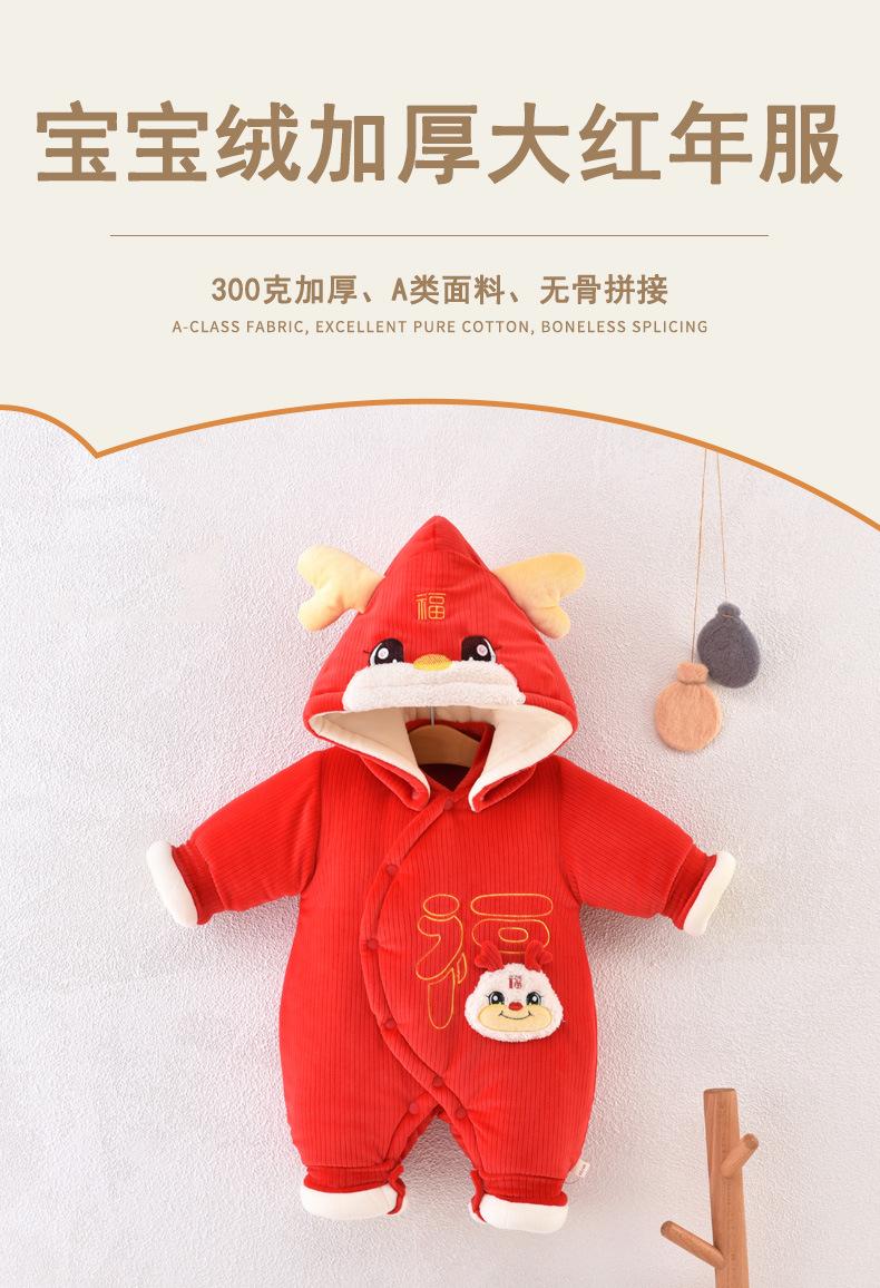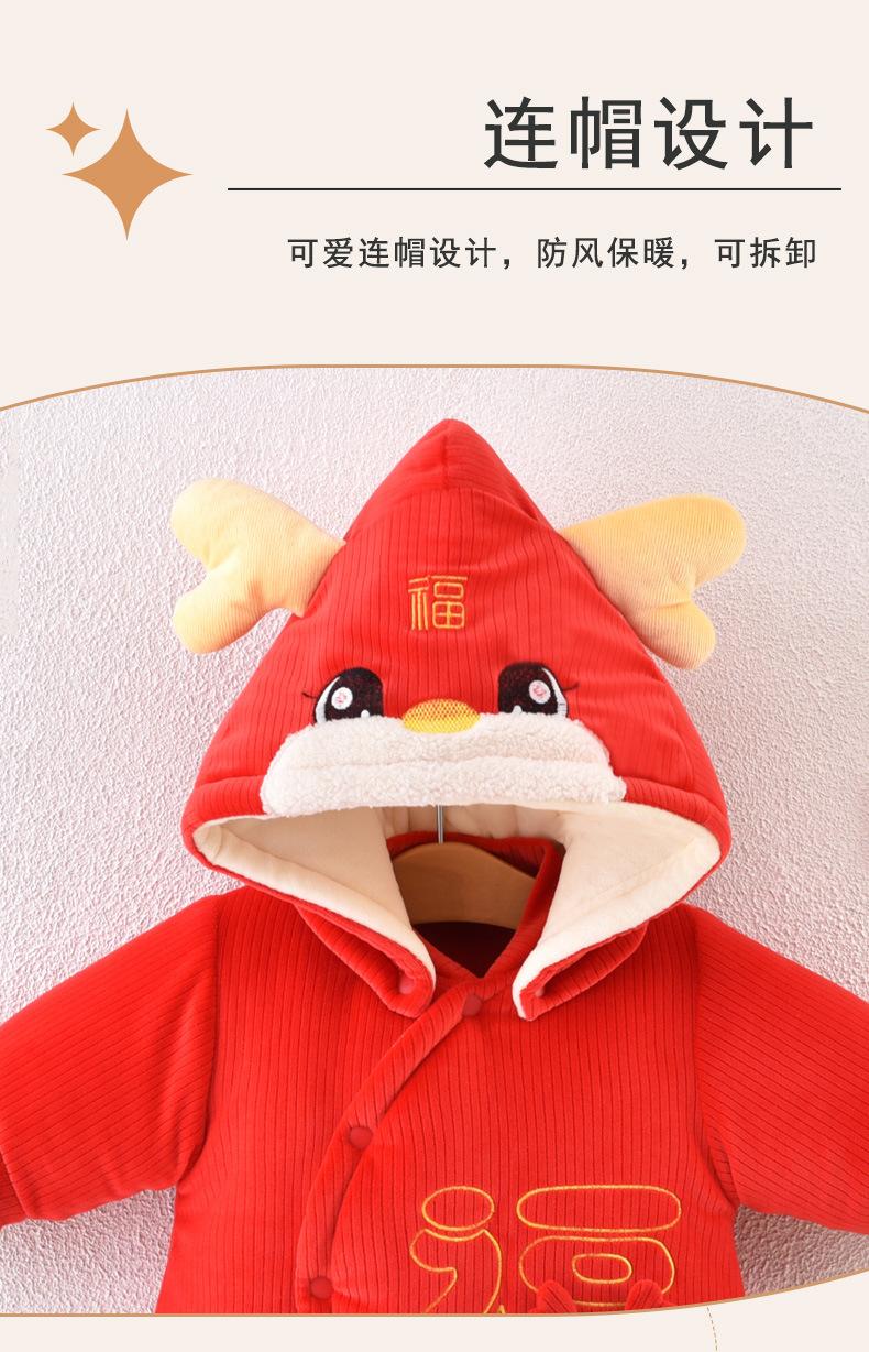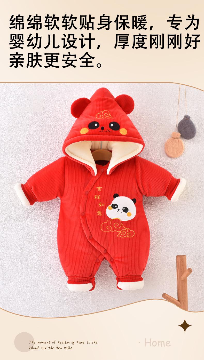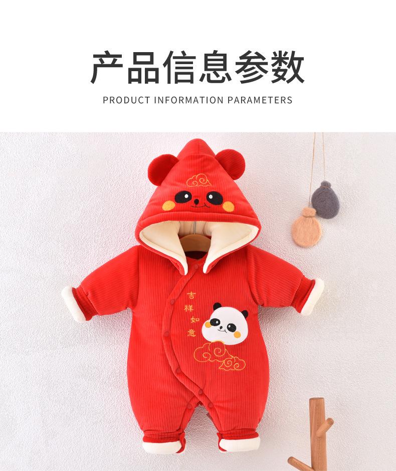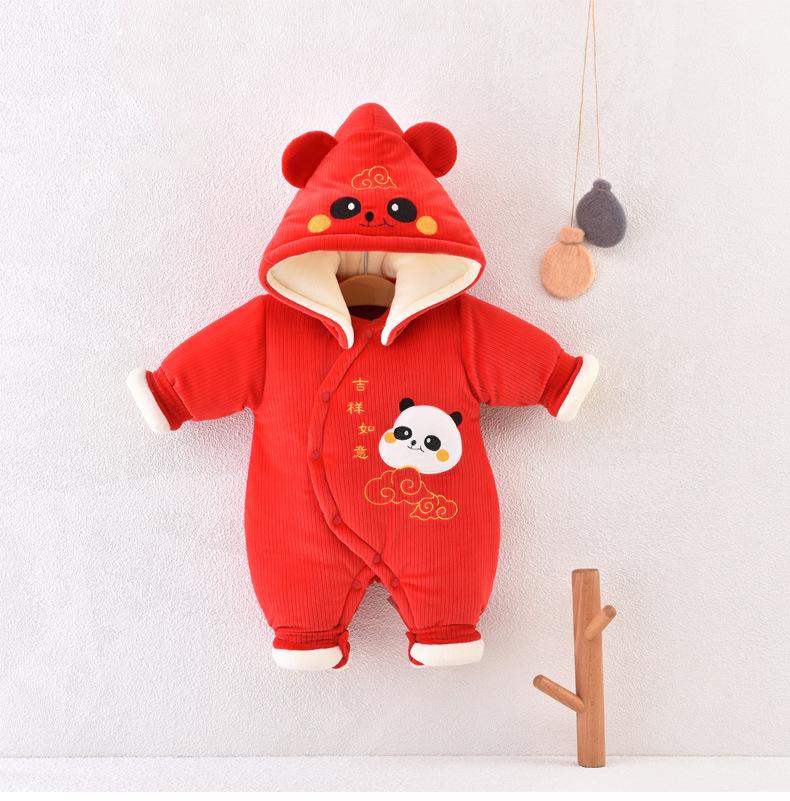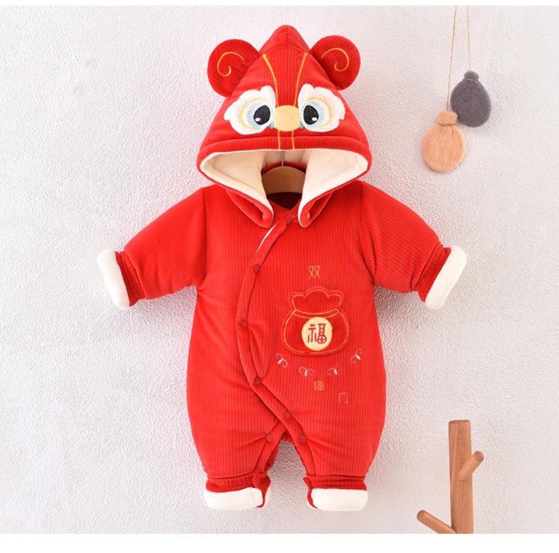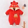 Ropa para recién nacidos Otoño e Invierno Ropa de una pieza para bebés recién nacidos Algodón cálido Hakayama Luna Llena Roja Ropa de Año Nuevo de 100 días