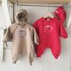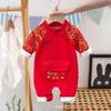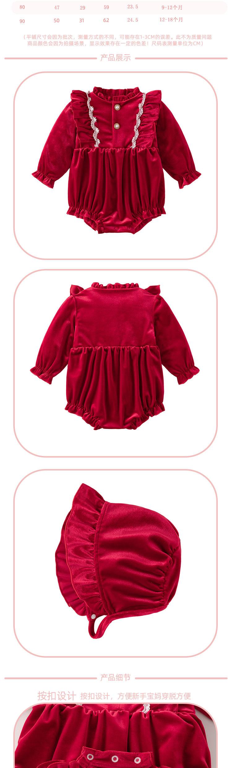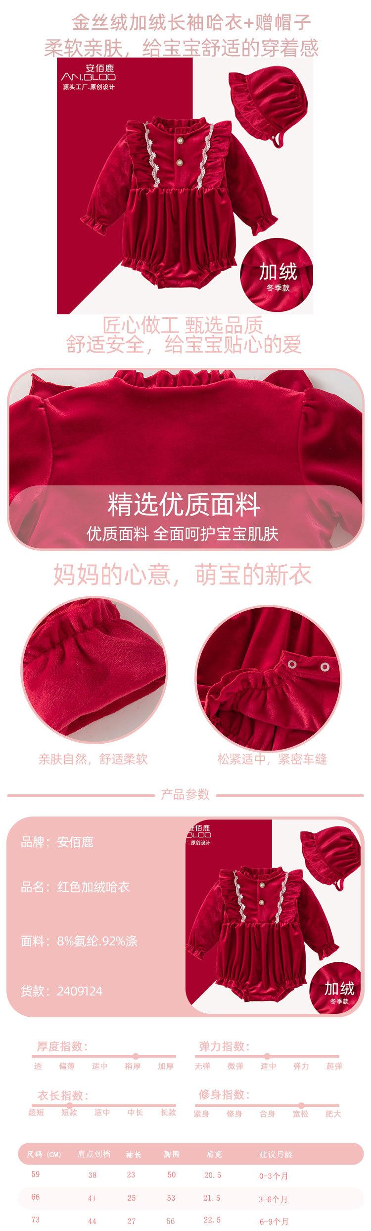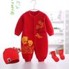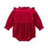 Ropa de otoño e invierno con forro polar para bebé recién nacido, luna llena, cien días, vestido de un año, ropa roja de una pieza para niña.