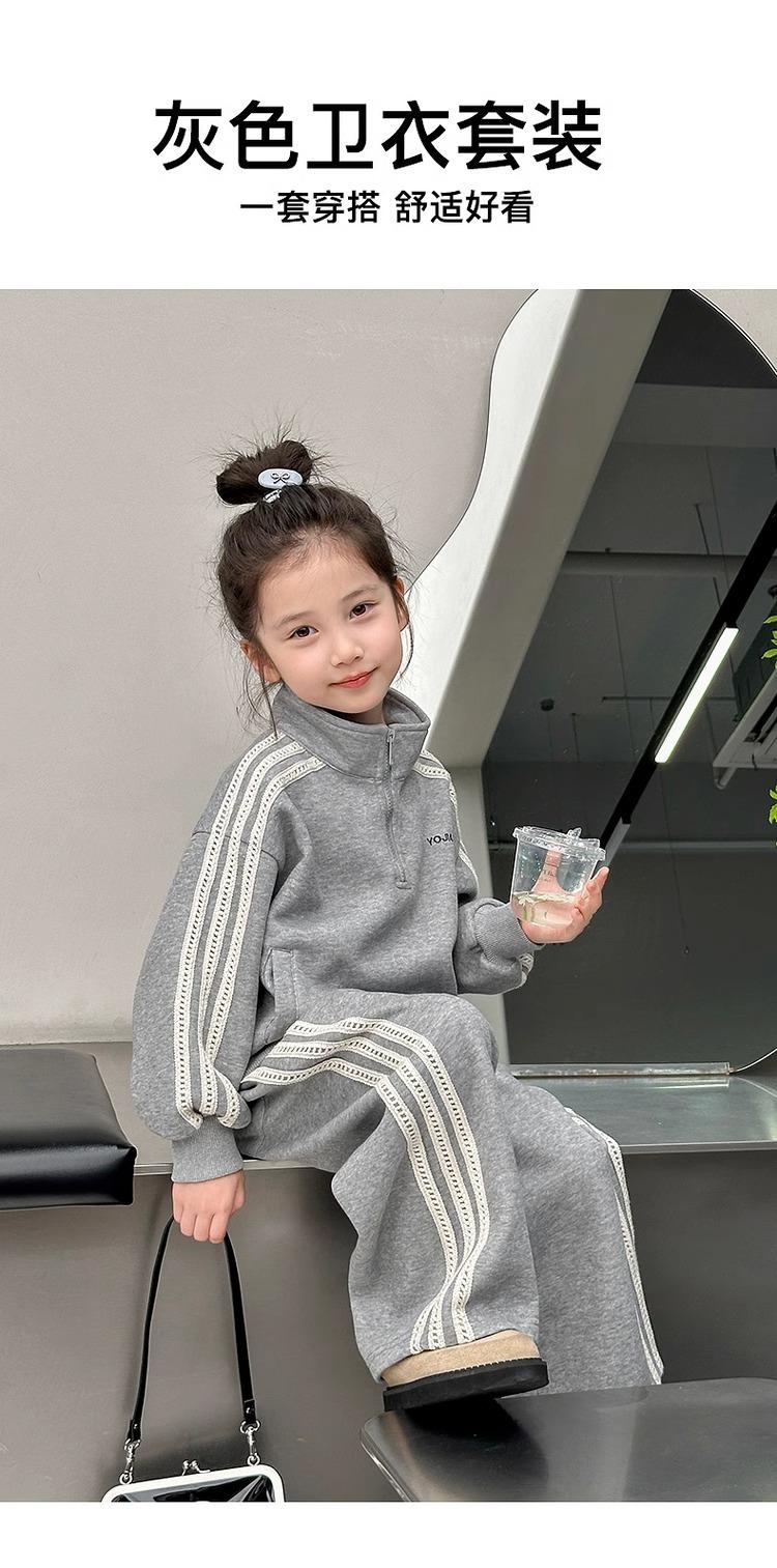2024 Primavera y otoño Nuevo traje deportivo para niñas Ropa de otoño Estilo occidental Ropa de moda para niños Sudadera holgada para niños Dos piezas de moda