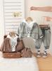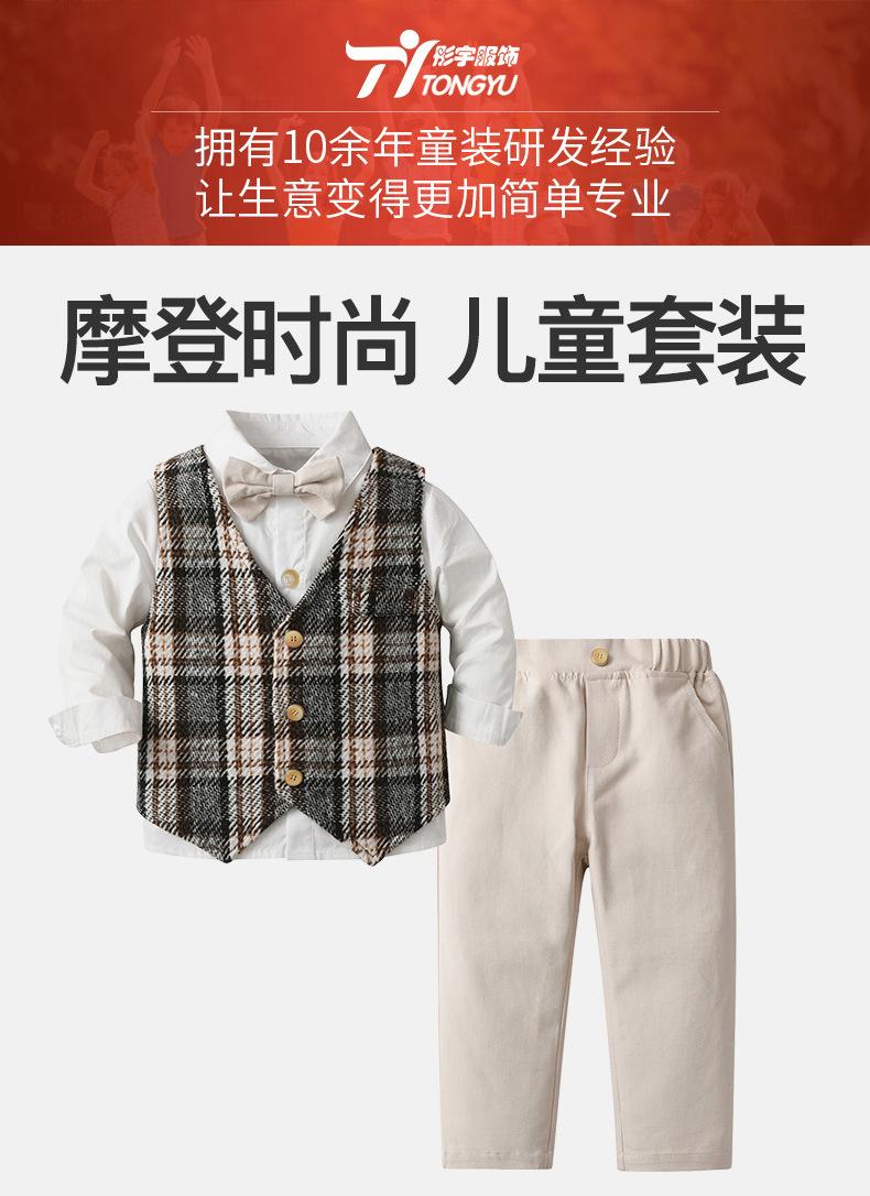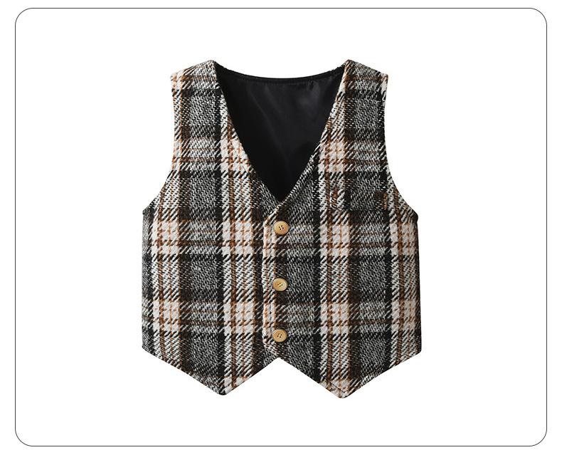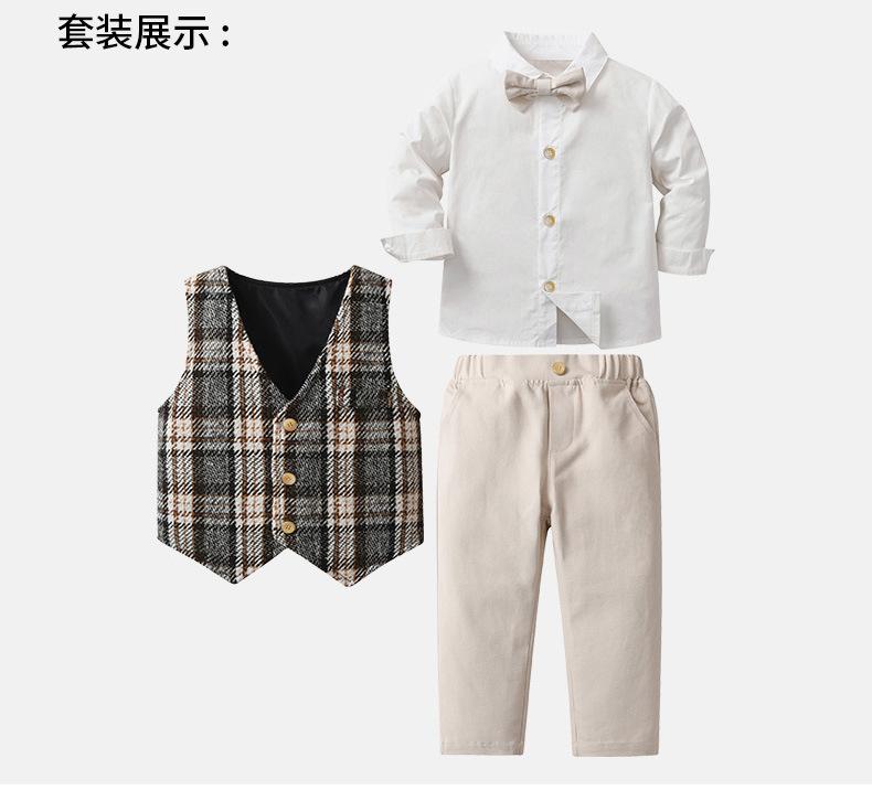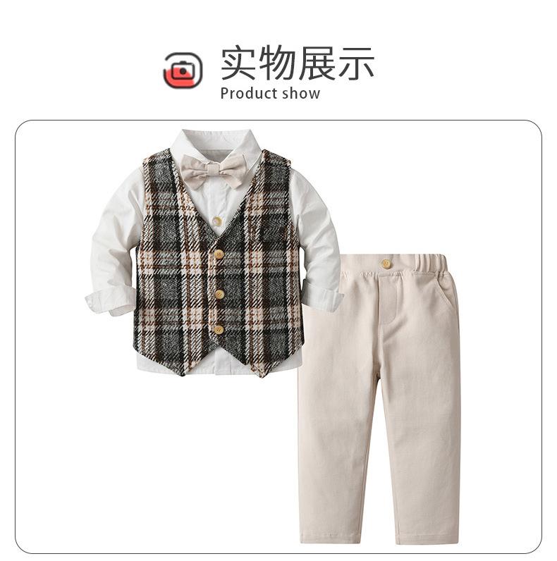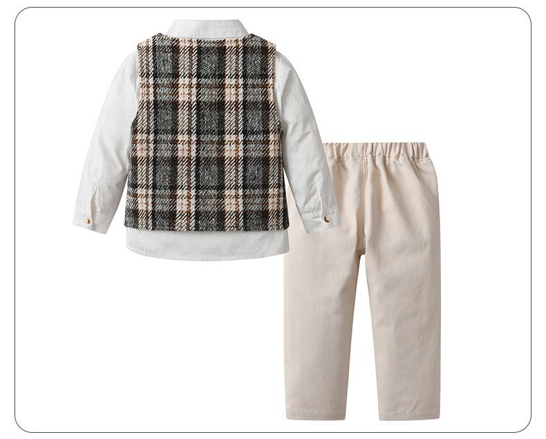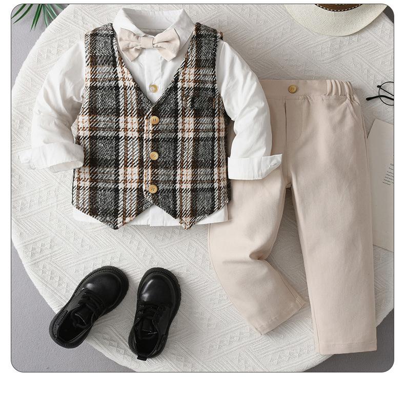 Ropa infantil transfronteriza al por mayor para niños primavera y otoño ropa infantil bebé chaleco de cuadros británicos conjunto de tres piezas traje de niño