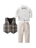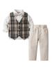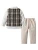 Talla 80-90-100-110-120-130-140 ropa infantil transfronteriza al por mayor ropa infantil de primavera y otoño bebé chaleco de cuadros británicos traje de tres piezas para niño