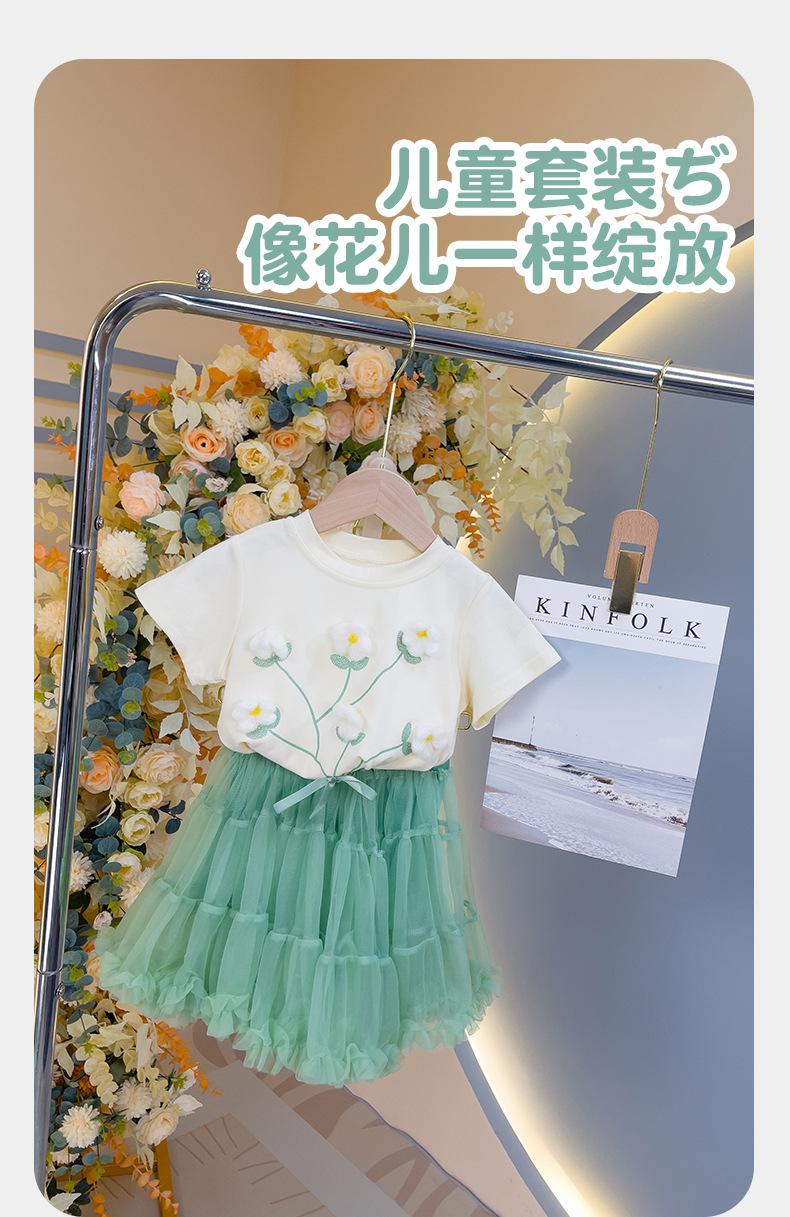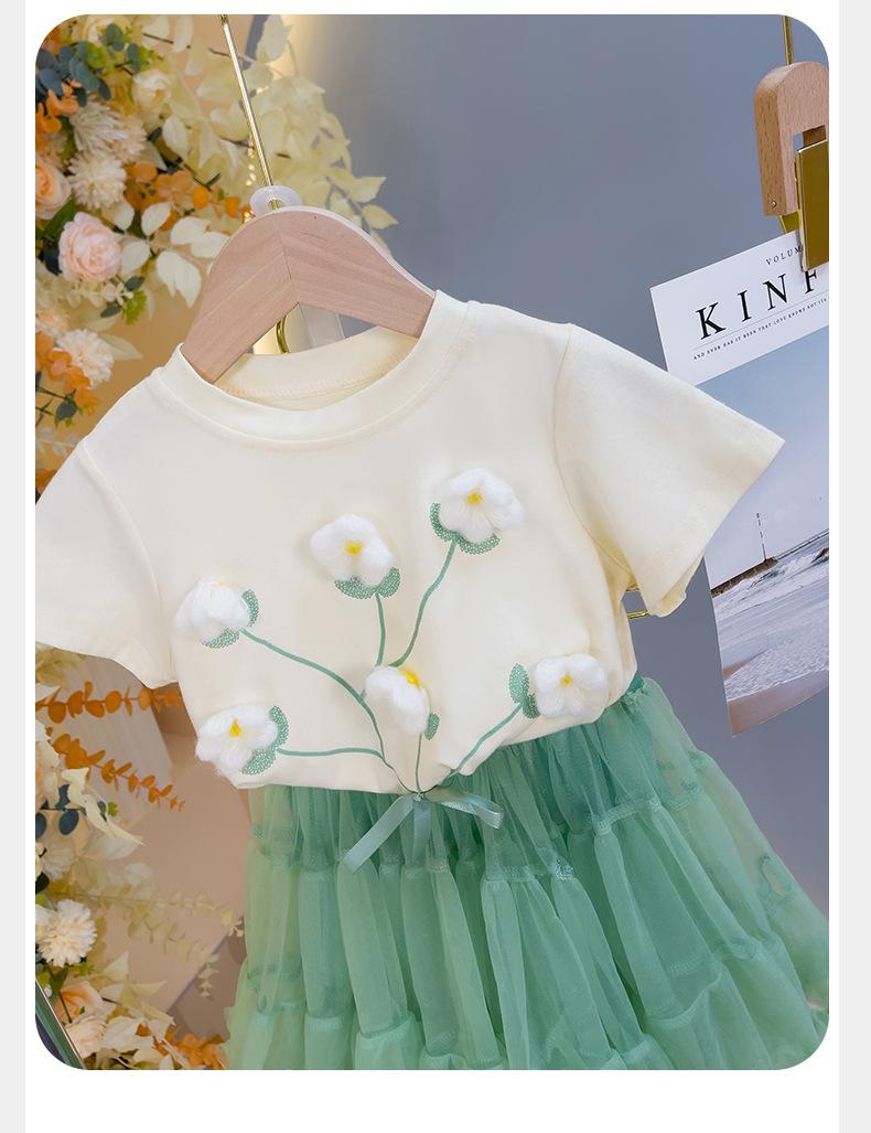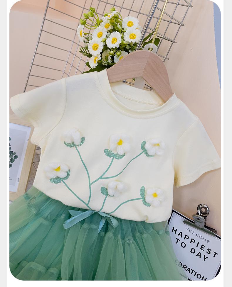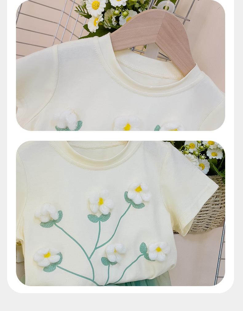 Traje de niña, verano 2023, nuevo estilo occidental, top de flores tridimensionales de celebridades de Internet para niñas, camisa básica coreana para niñas