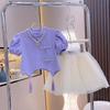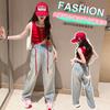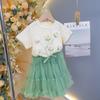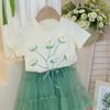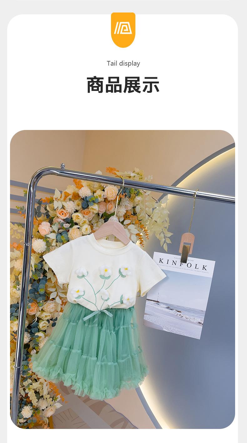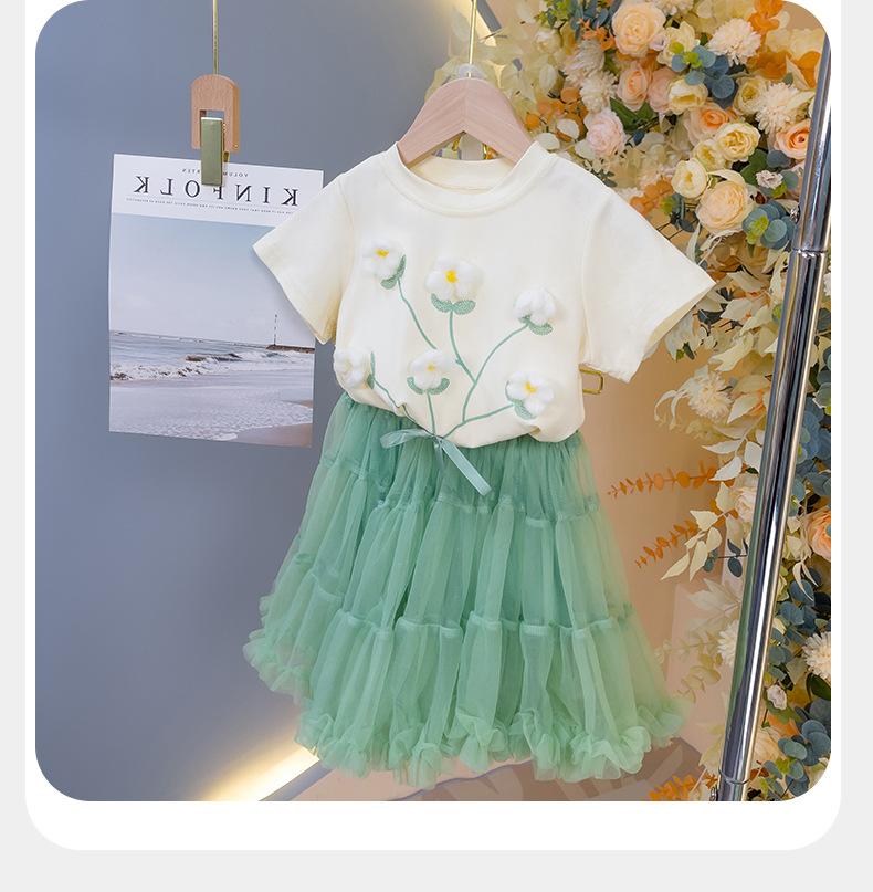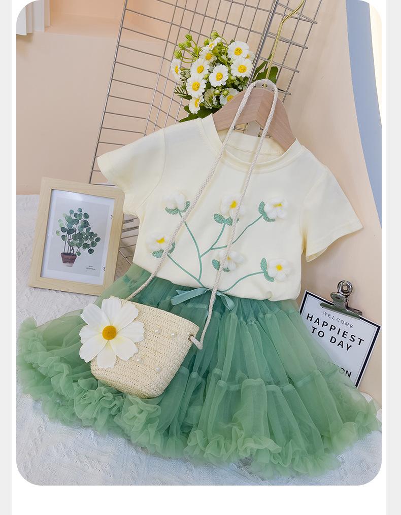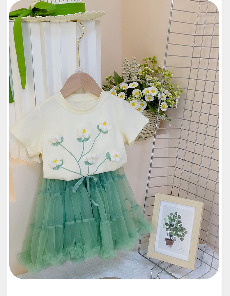 Traje de niña, verano 2023, nuevo estilo occidental, top de flores tridimensionales de celebridades de Internet para niñas, camisa básica coreana para niñas