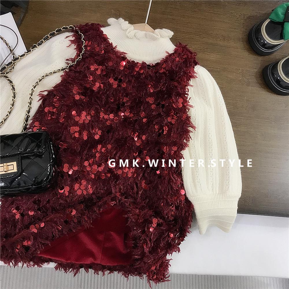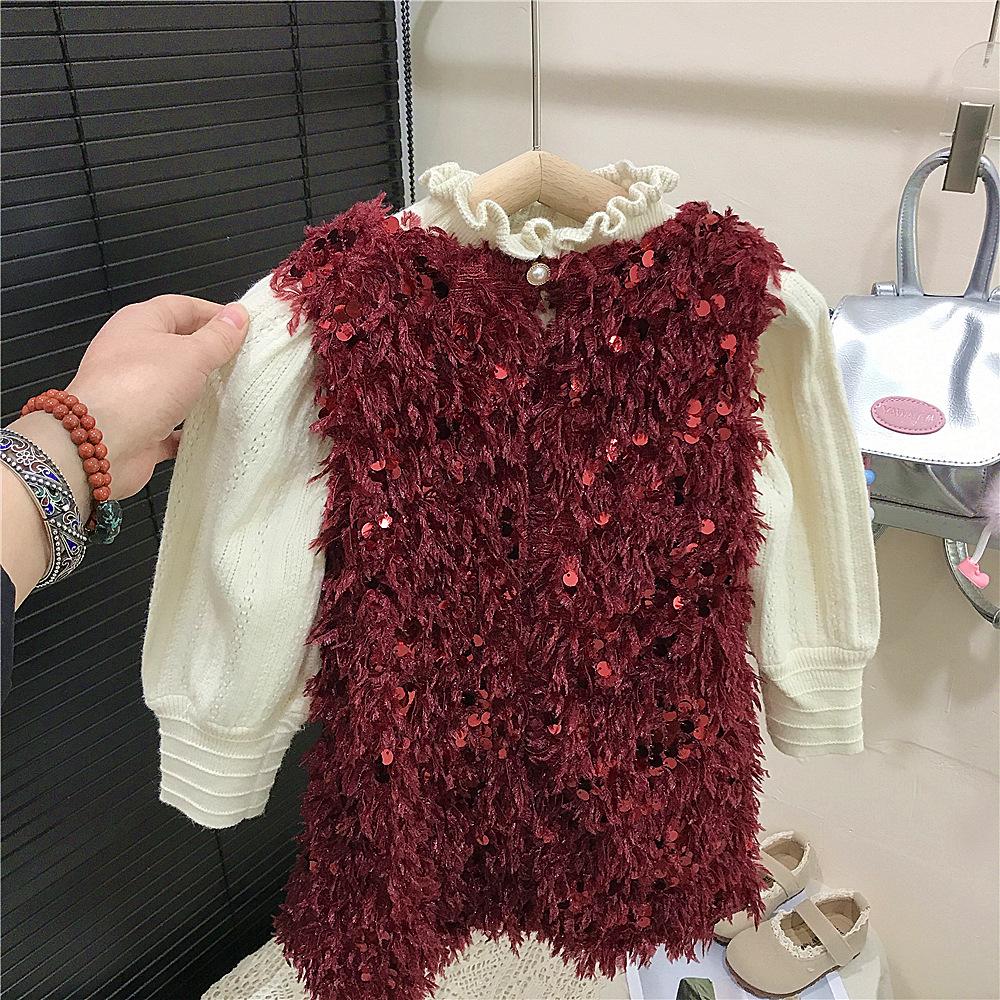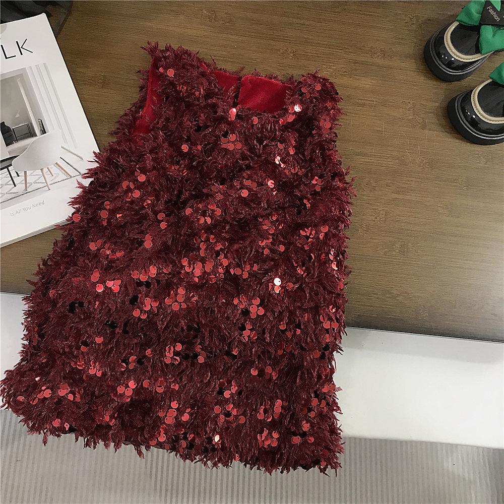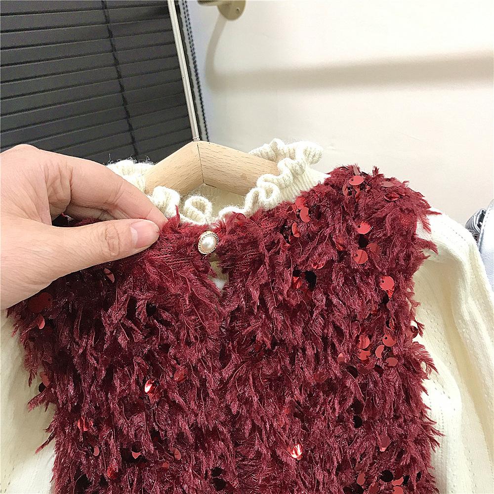 Vestido rojo de niña, vestido de Navidad, vestido de Año Nuevo, vestido de princesa infantil, suéter, vestido de plumas.