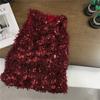Feather velvet sundress red, Hollow turtleneck sweater base beige
