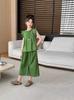 Apricot T-shirt + green skirt