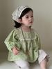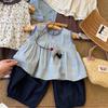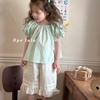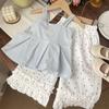 Conjunto informal de dos piezas para niña, estilo coreano, con camisa y pantalones de encaje con orejas de bebé, primavera de 2025
