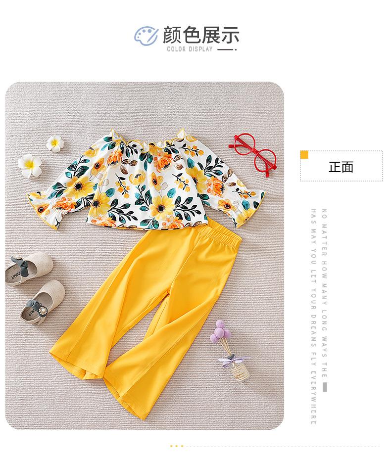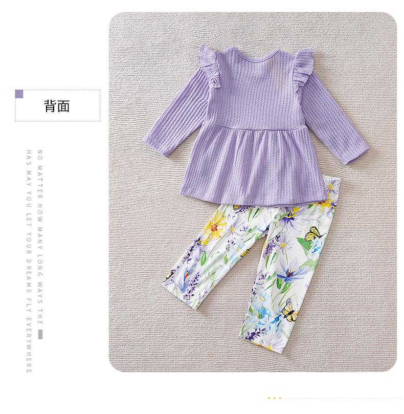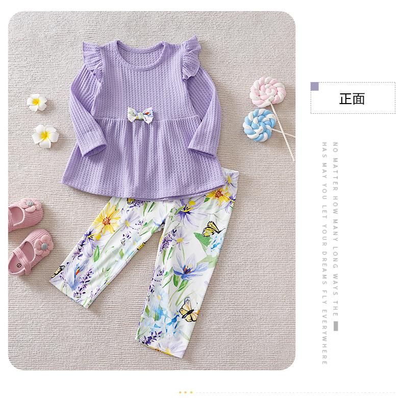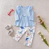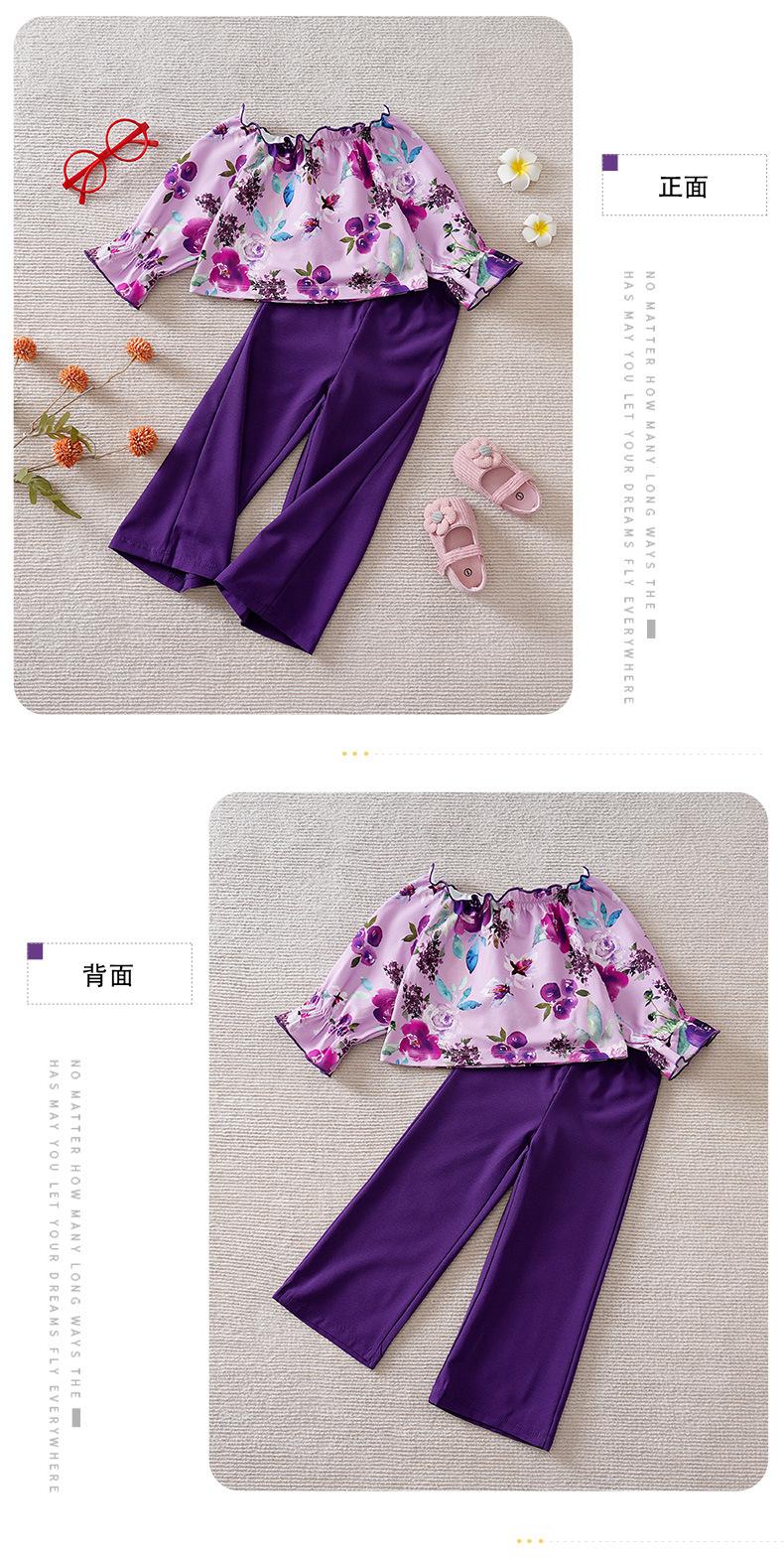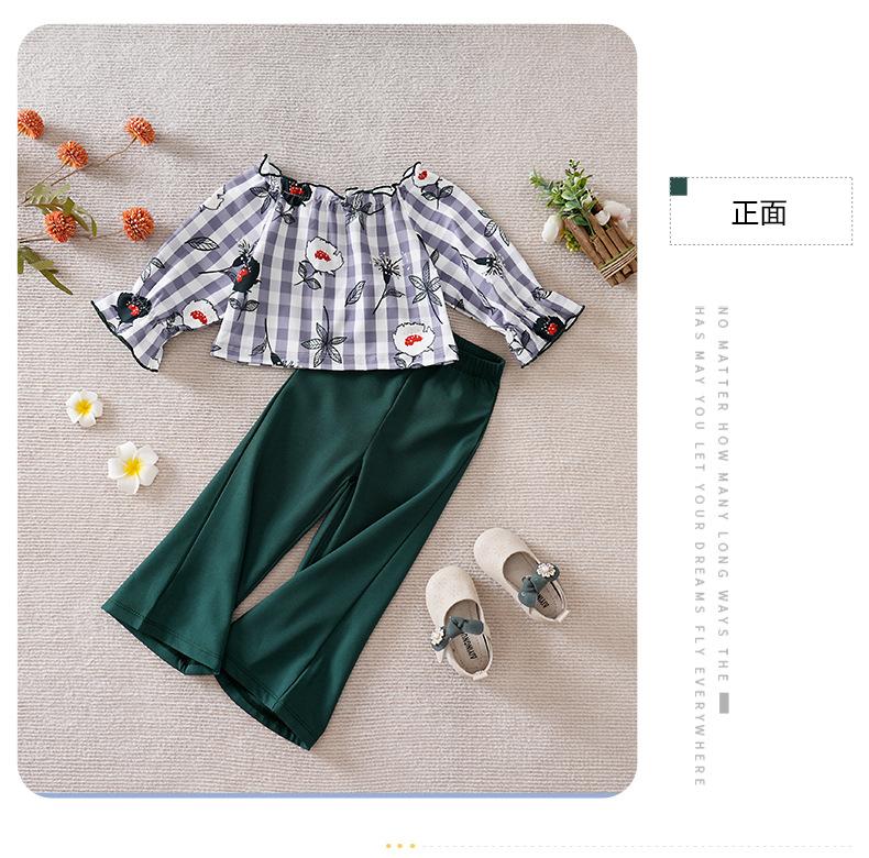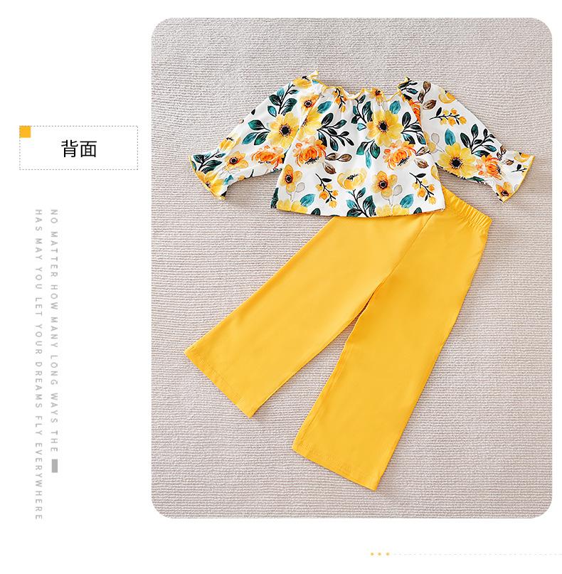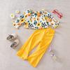 Otoño Nuevo Bebé Niña Dos Piezas Top Floral Pantalones Acampanados Traje para Niños Traje Camisa Falda Traje Q