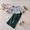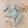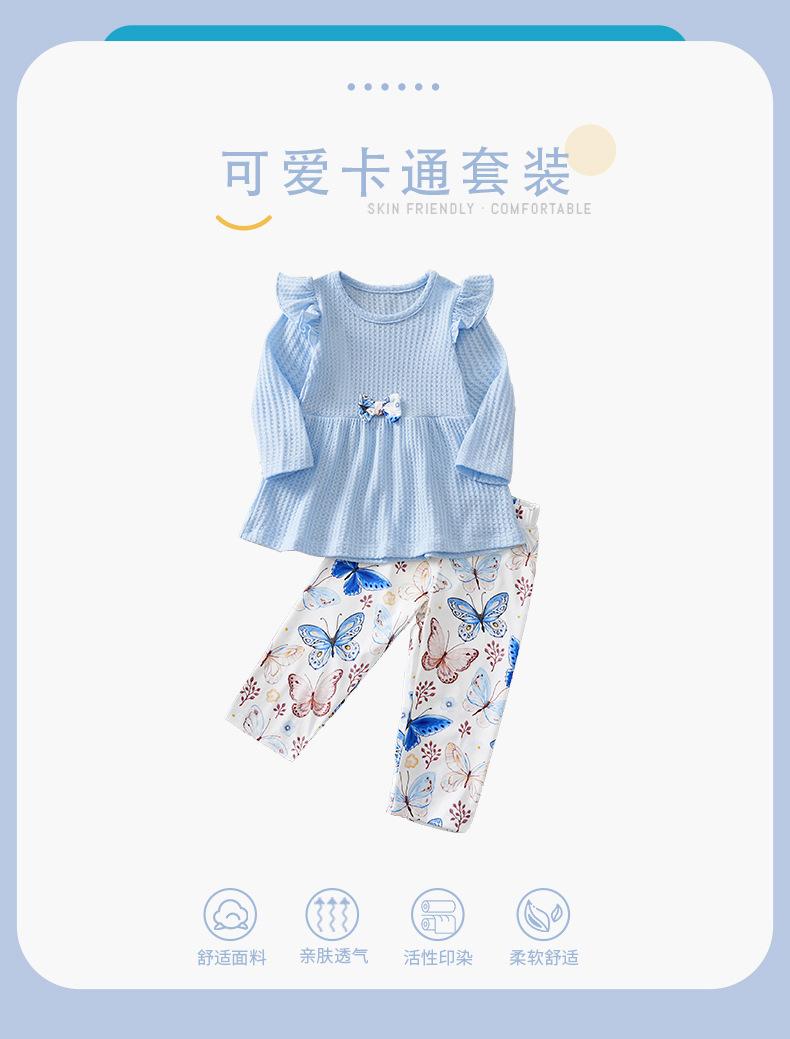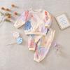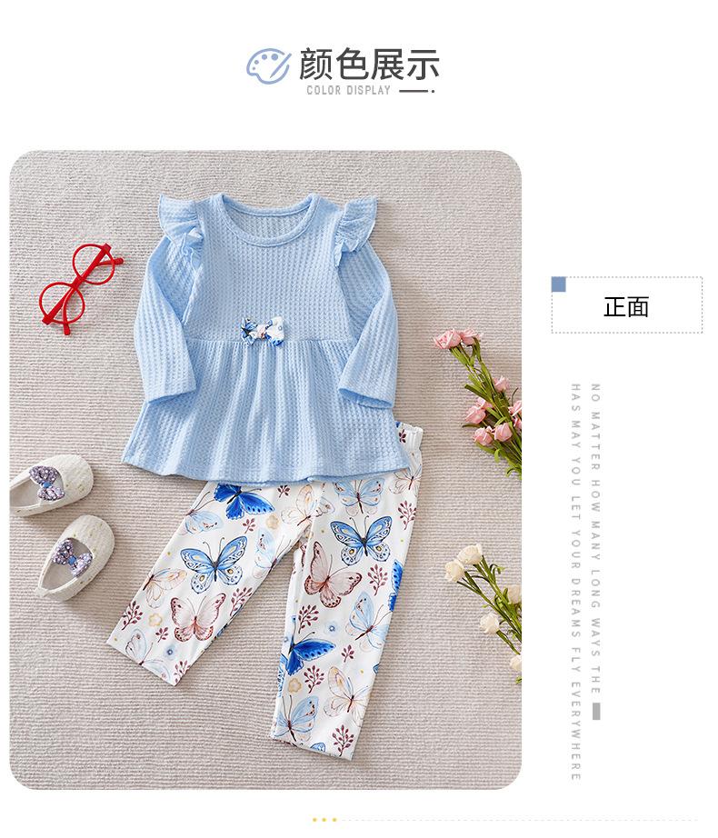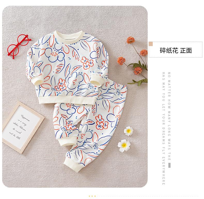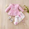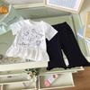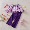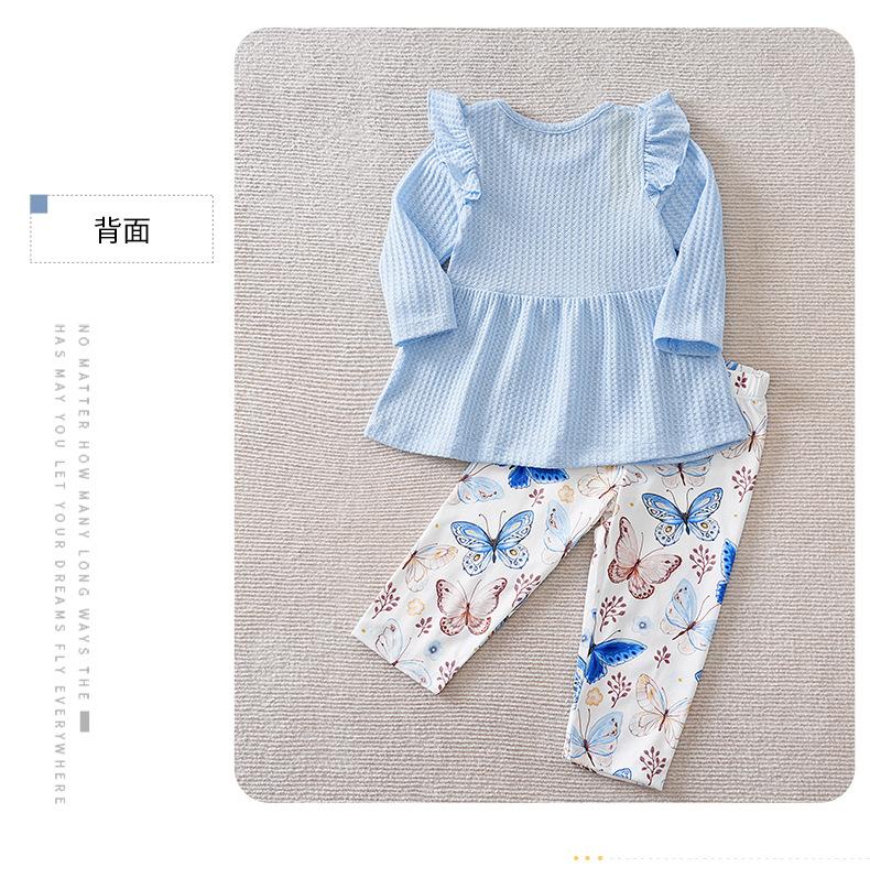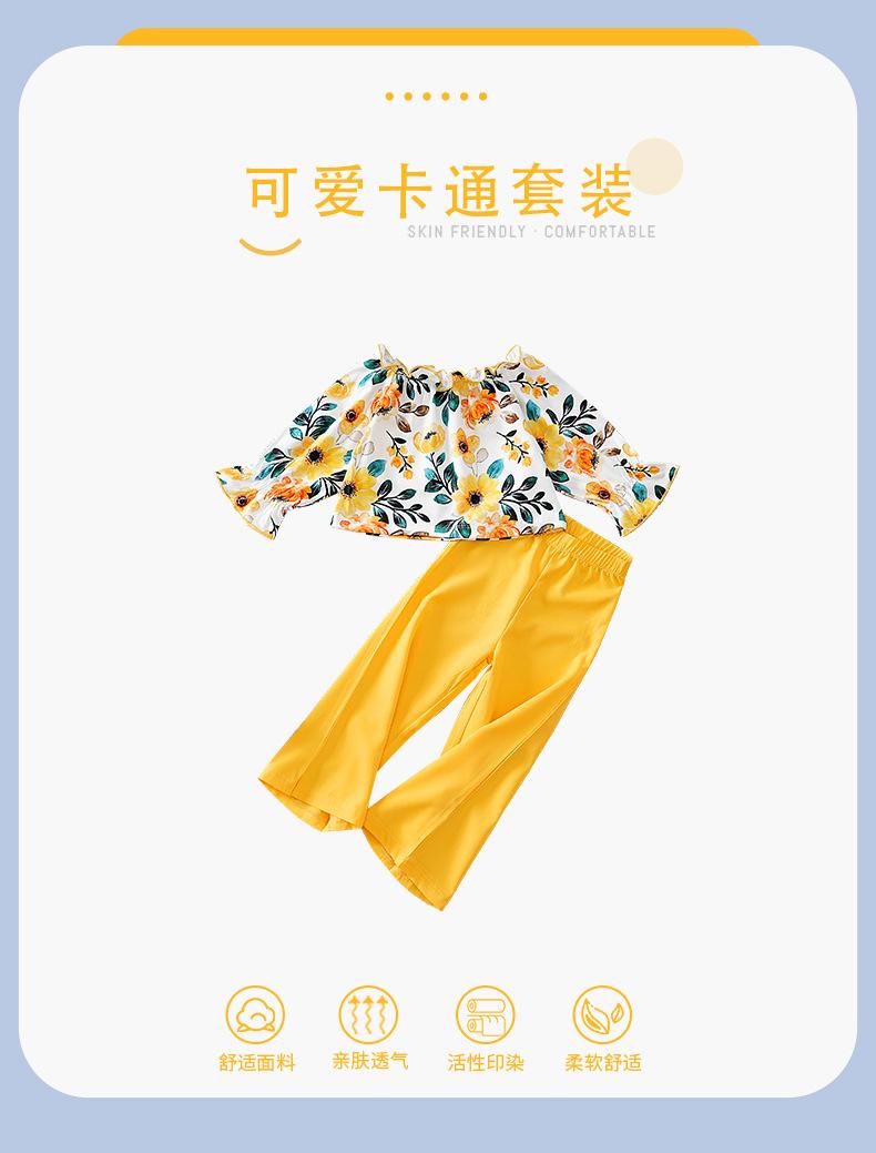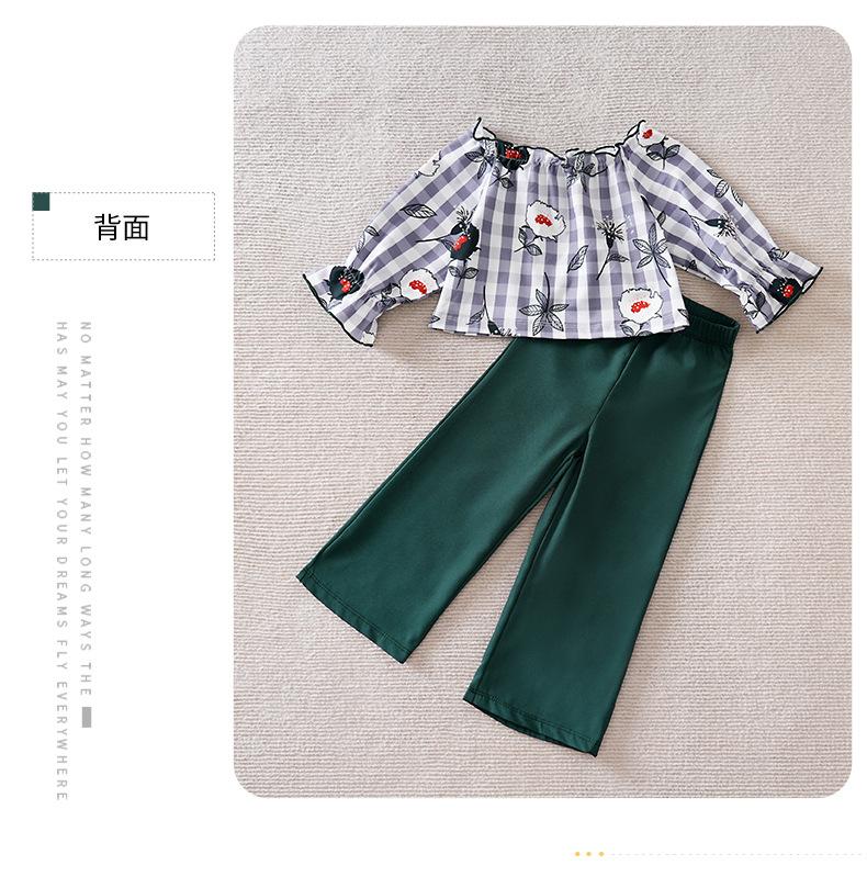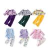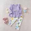 Otoño Nuevo Bebé Niña Dos Piezas Top Floral Pantalones Acampanados Traje para Niños Traje Camisa Falda Traje Q