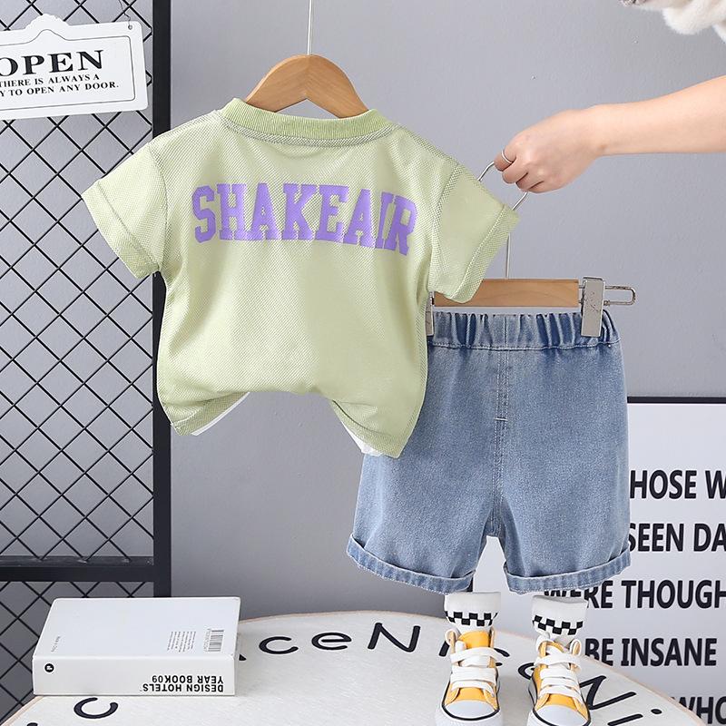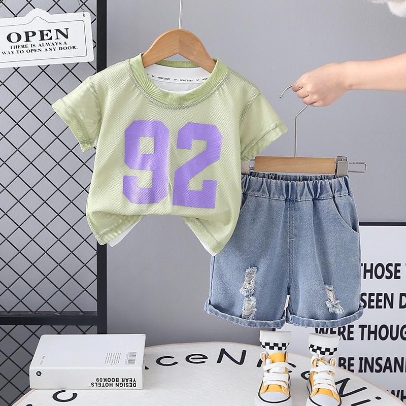 Traje de verano nuevo para niños de 1 a 3 años 5 niños coreano casual manga corta ropa para niños malla para niños tres piezas moderno
