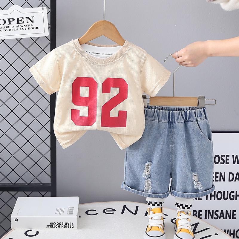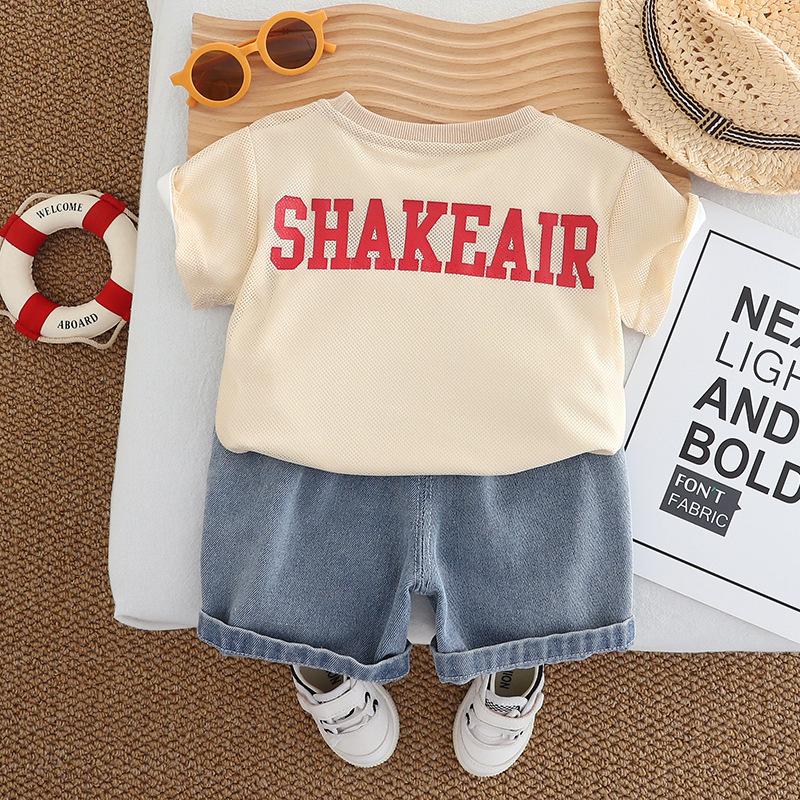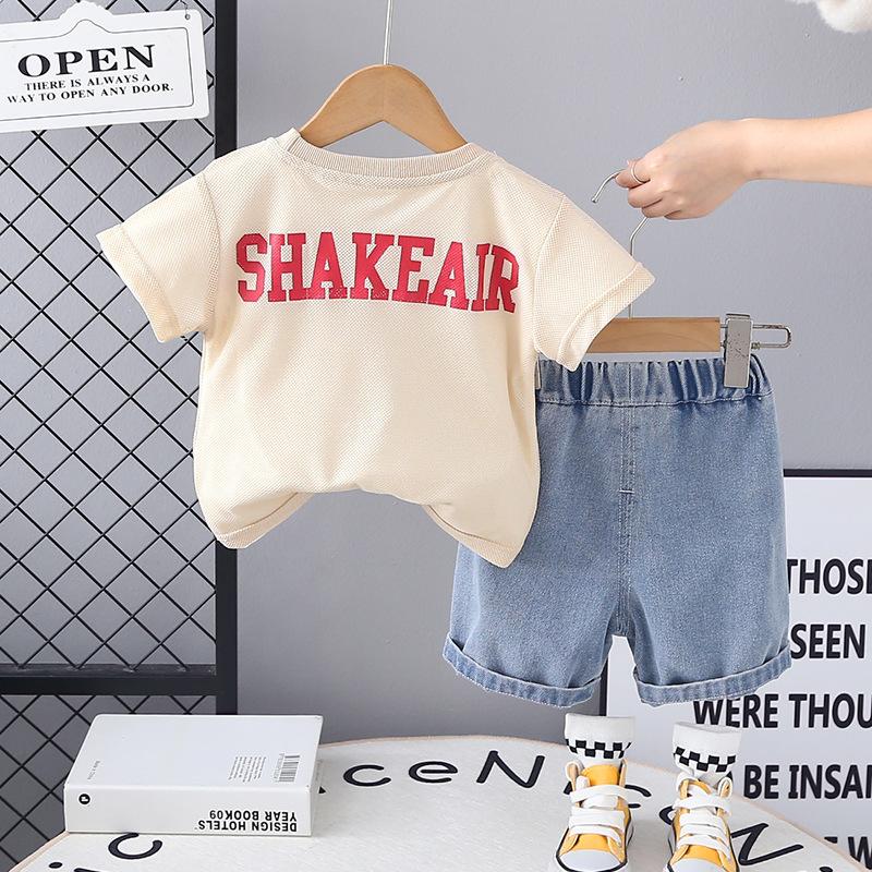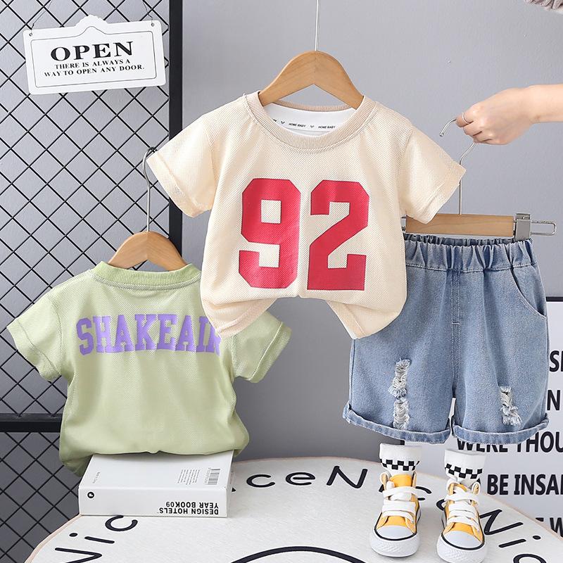 Compra Traje de verano nuevo para niños de 1 a 3 años 5 niños coreano casual manga corta ropa para niños malla para niños tres piezas moderno al por mayor en Joom.pro