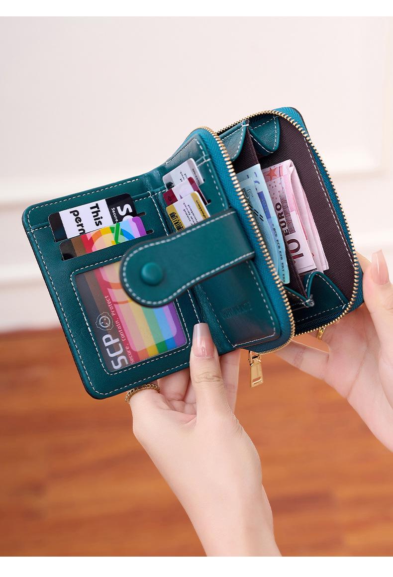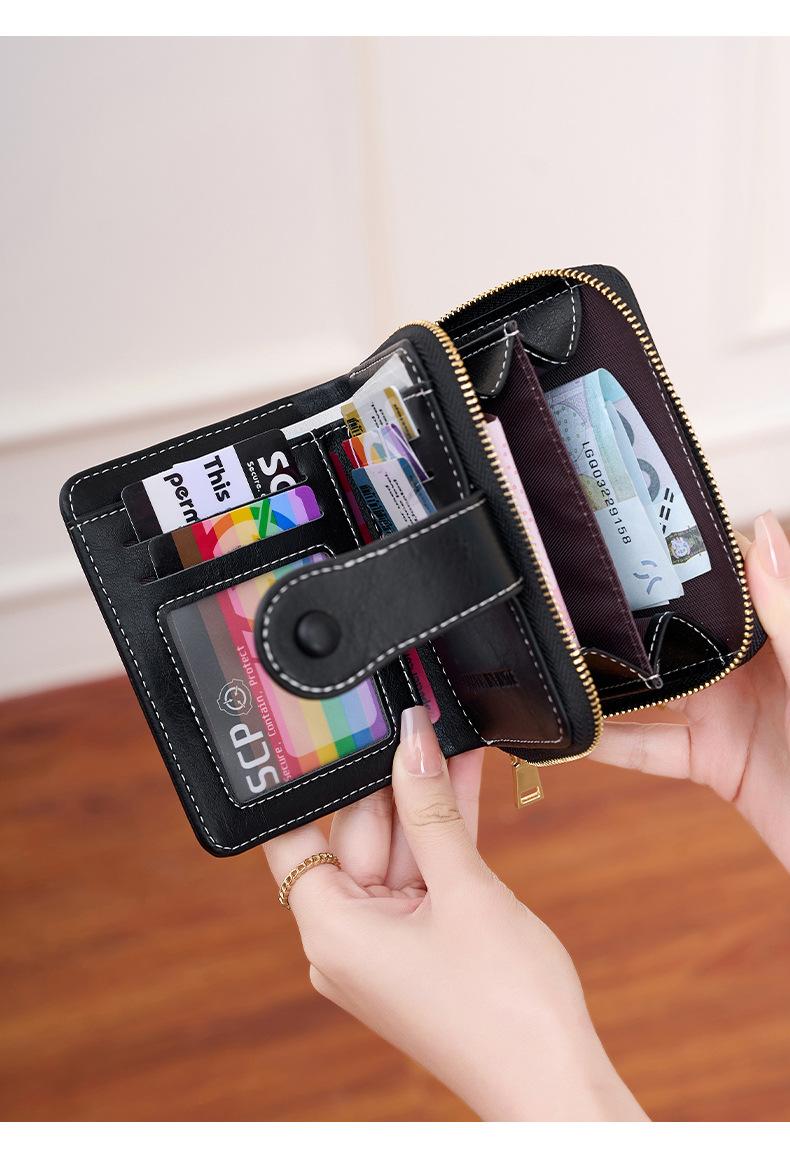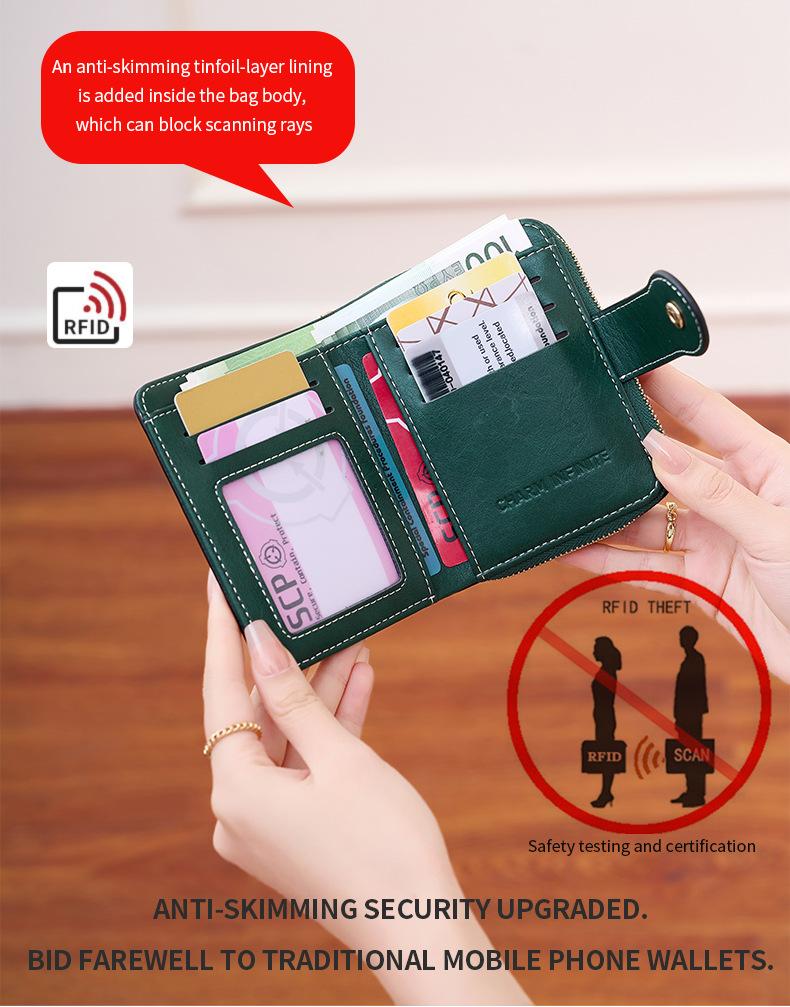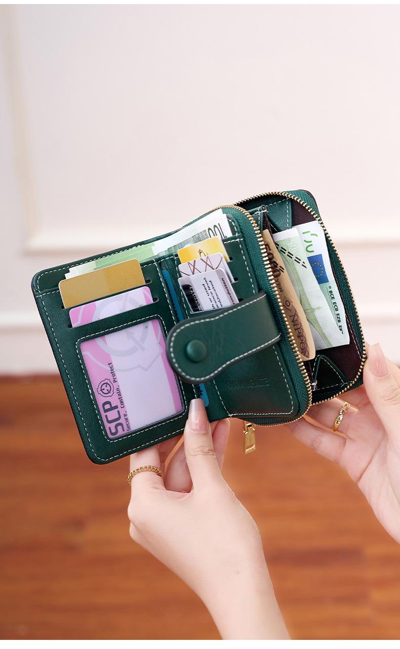 Monedero antimagnético RFID transfronterizo con cremallera corta y hebilla, nuevo monedero europeo y americano de gran capacidad para mujer