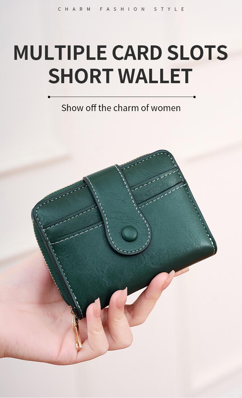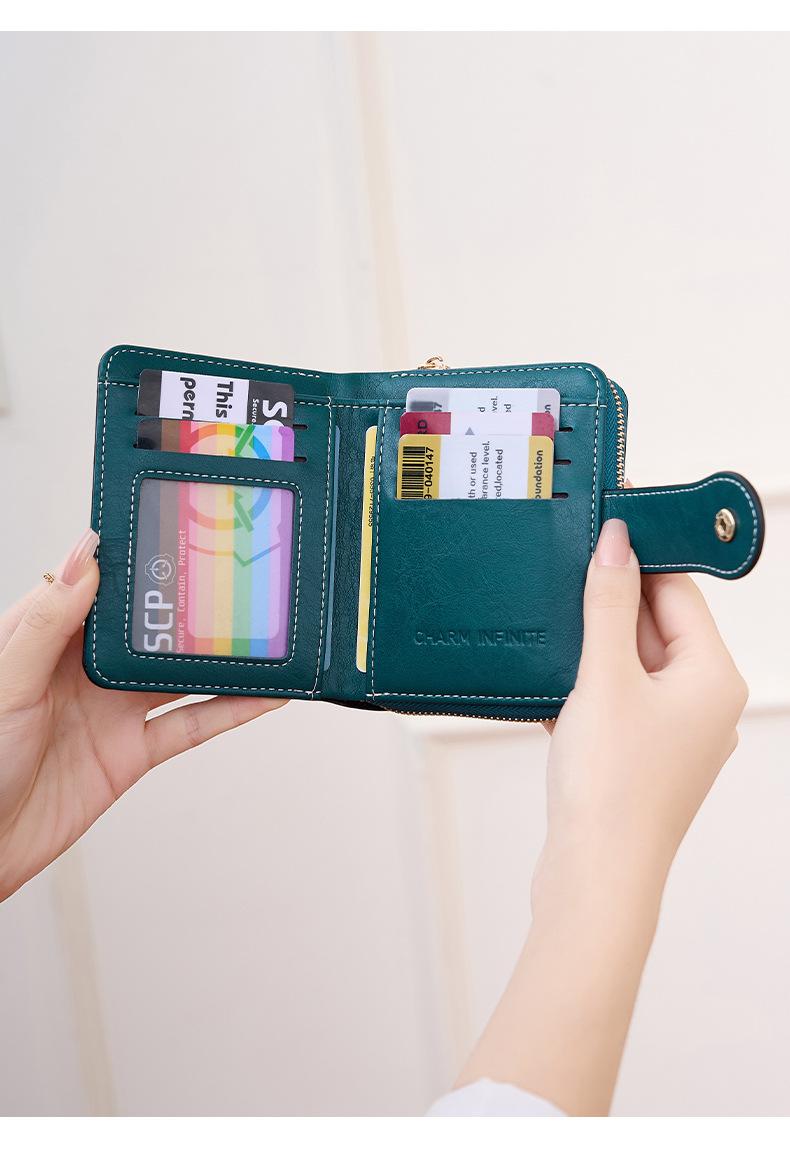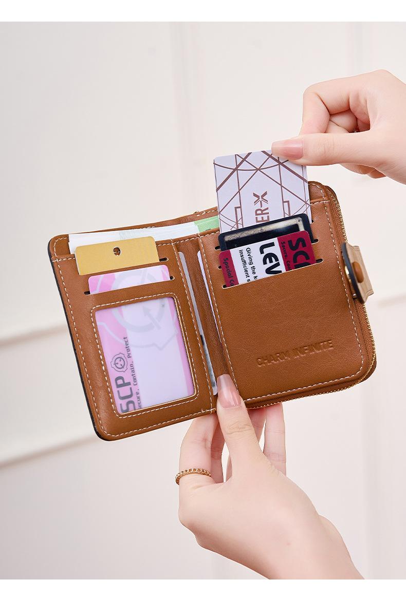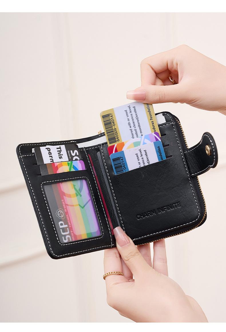 Monedero antimagnético RFID transfronterizo con cremallera corta y hebilla, nuevo monedero europeo y americano de gran capacidad para mujer