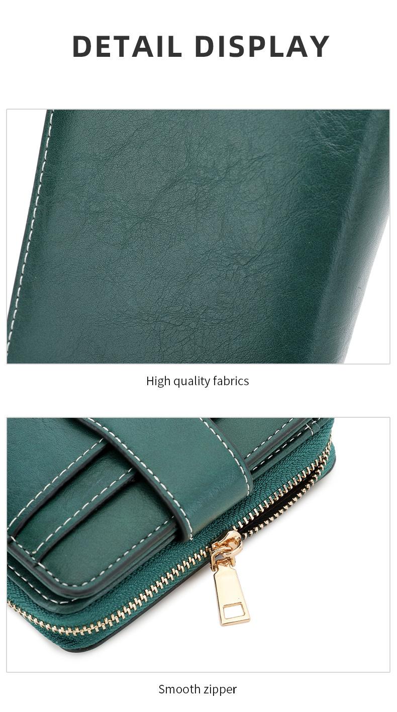 Cartera de mujer con RFID antirrobo transfronterizo, de cuero encerado, con doble cremallera, estilo cartera larga, estilo retro europeo y americano.
