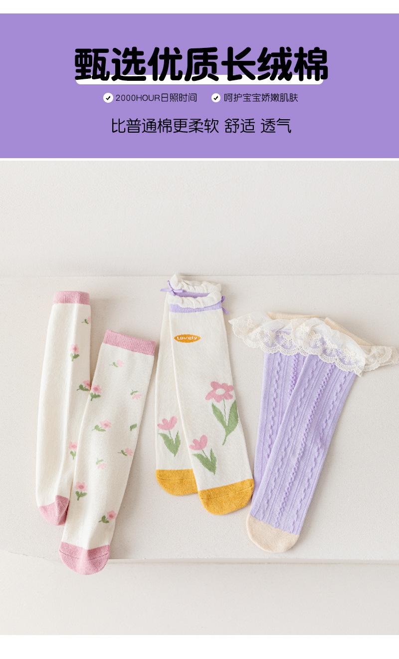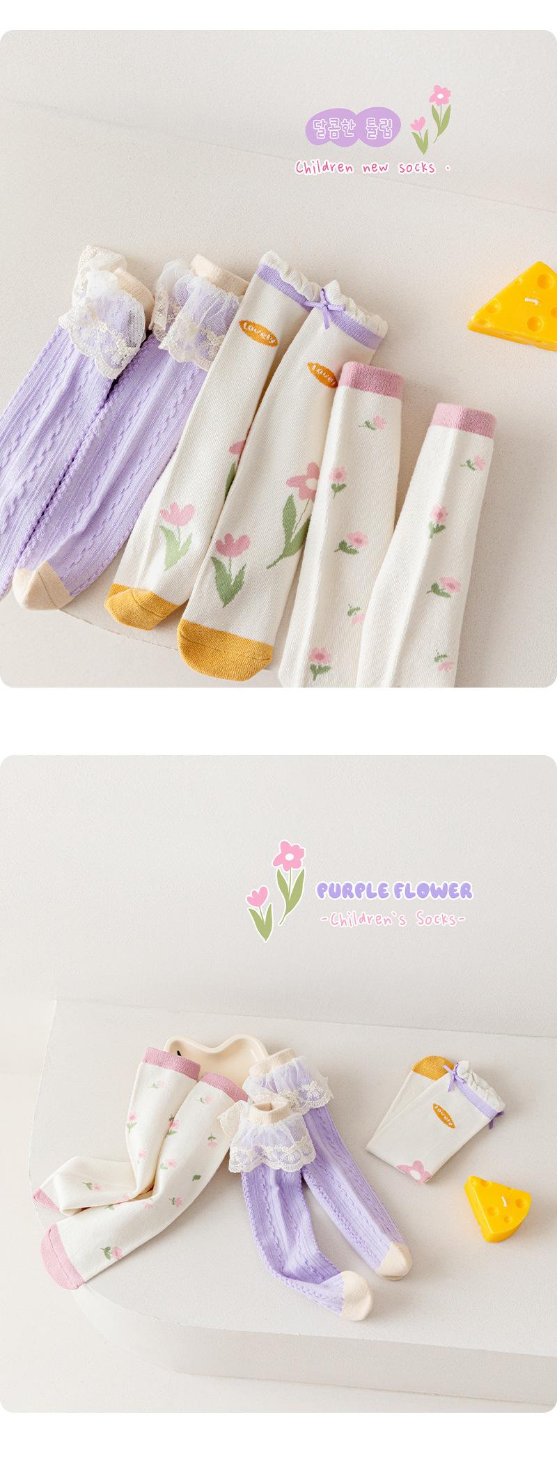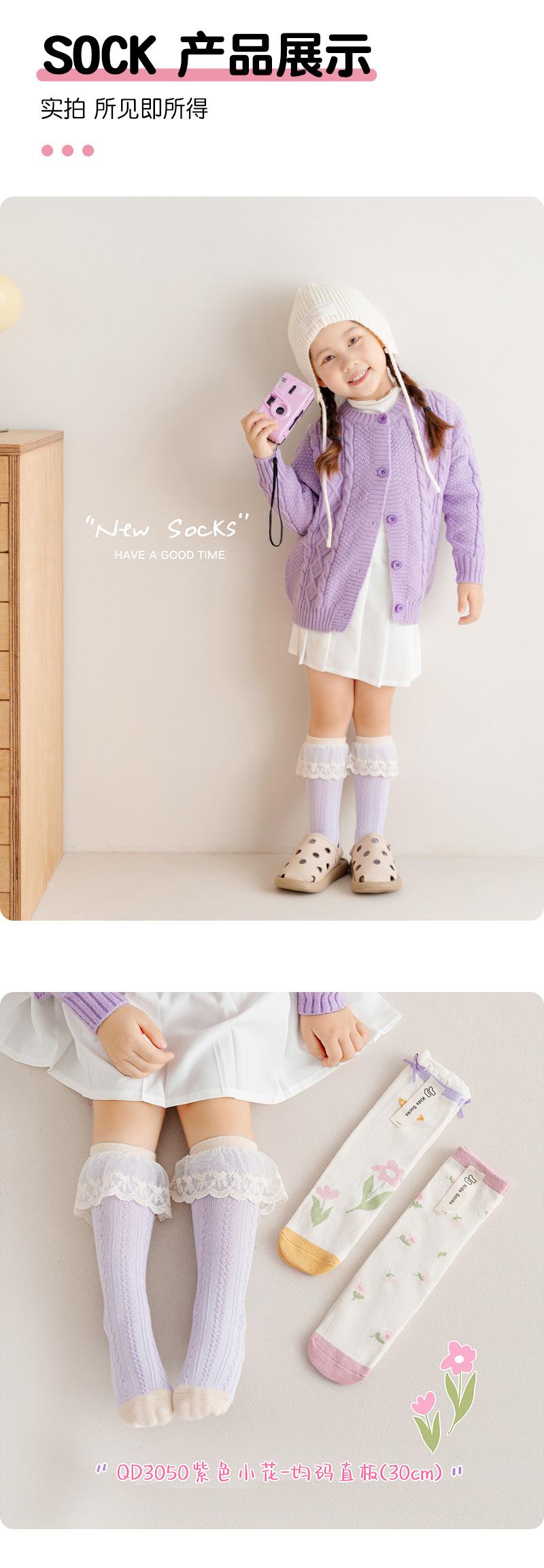 [Oferta Especial] 3 Pares de Calcetines para Niños 2025 Otoño e Invierno Nuevos Calcetines hasta la Pantorrilla para Niñas Calcetines para Niños de Dibujos Animados Flor Morada