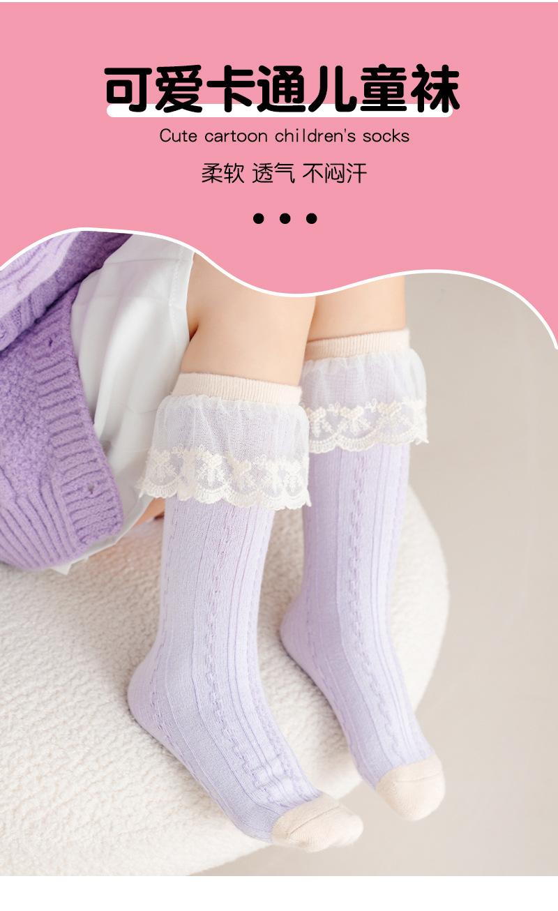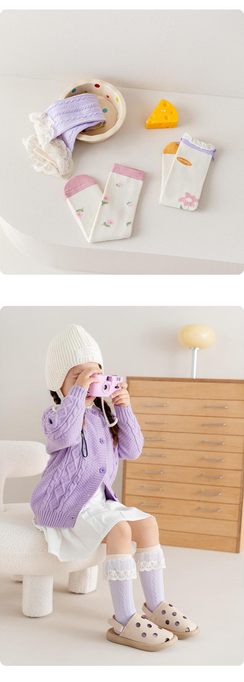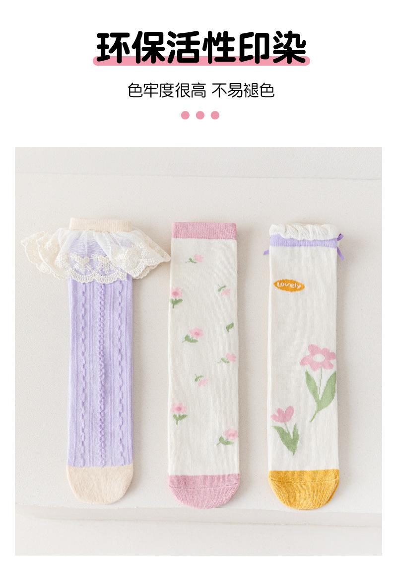 [Oferta Especial] 3 Pares de Calcetines para Niños 2025 Otoño e Invierno Nuevos Calcetines hasta la Pantorrilla para Niñas Calcetines para Niños de Dibujos Animados Flor Morada