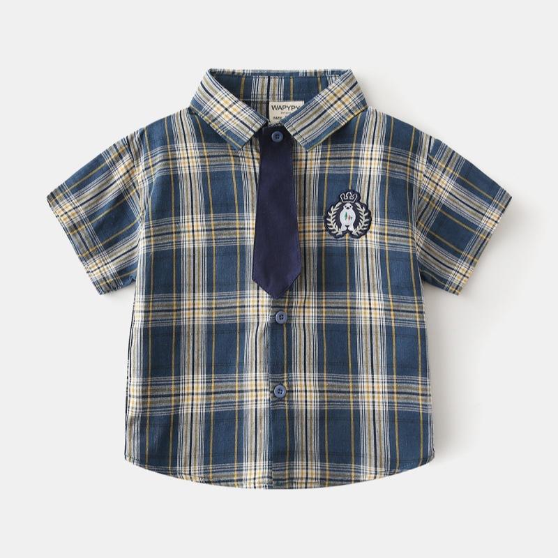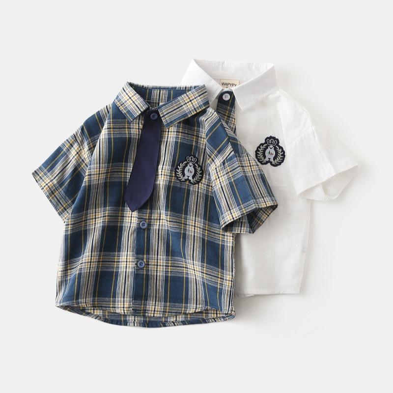 Ropa de verano 2025 para niños, venta al por mayor, camisa de manga corta para niños, camisa a cuadros para niños, camisa blanca pequeña para bebés, generación de marea, cabello