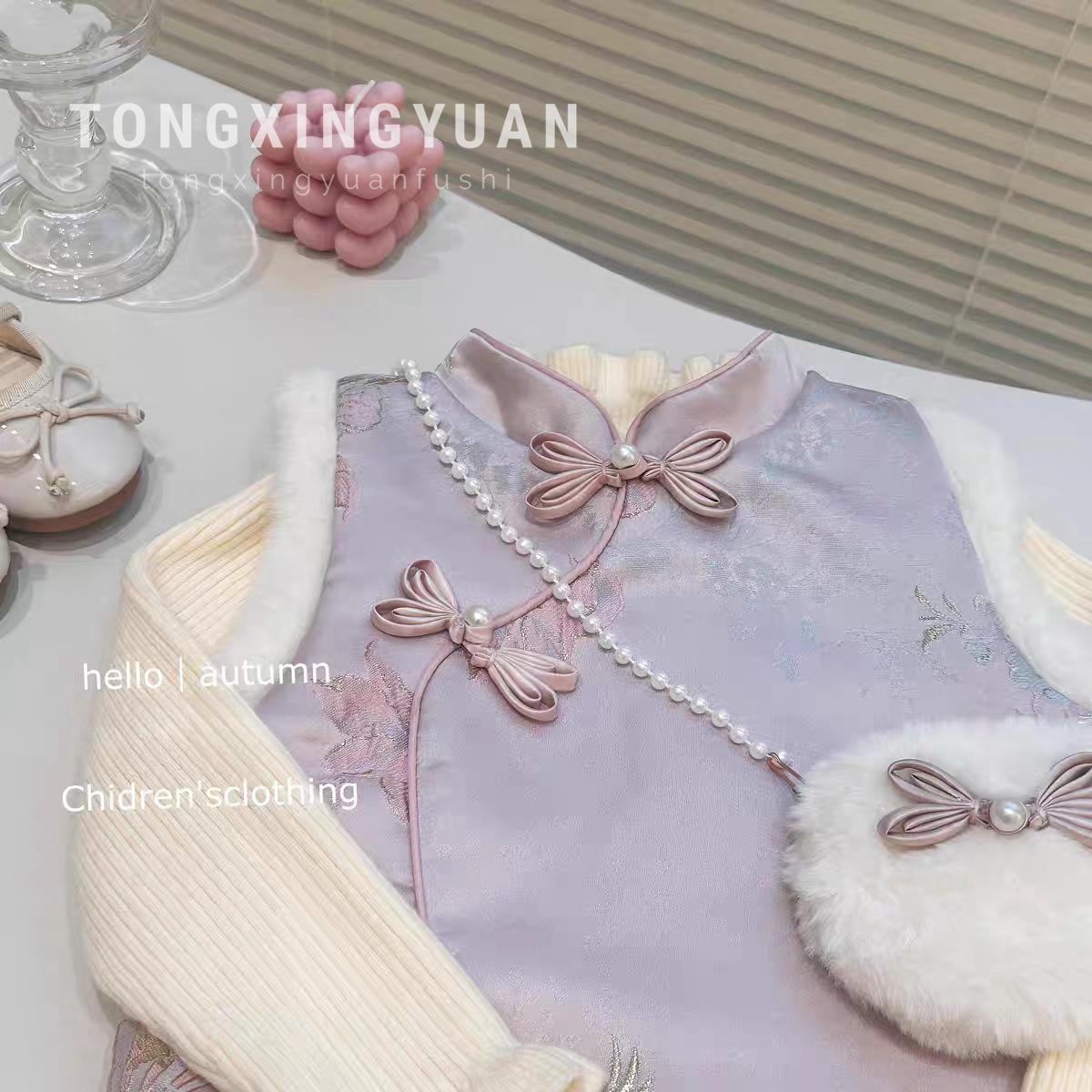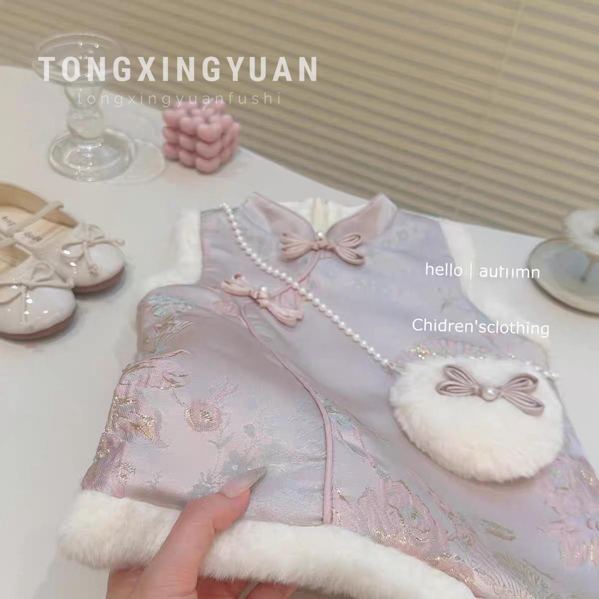 Moda Estilo Chino # Vestido Cheongsam Bordado para Niñas 2025 Invierno Nuevo Elegante Vestido Infantil Vestido de Princesa para Bebé