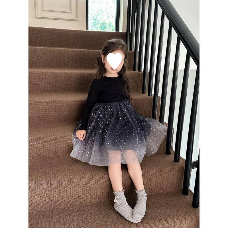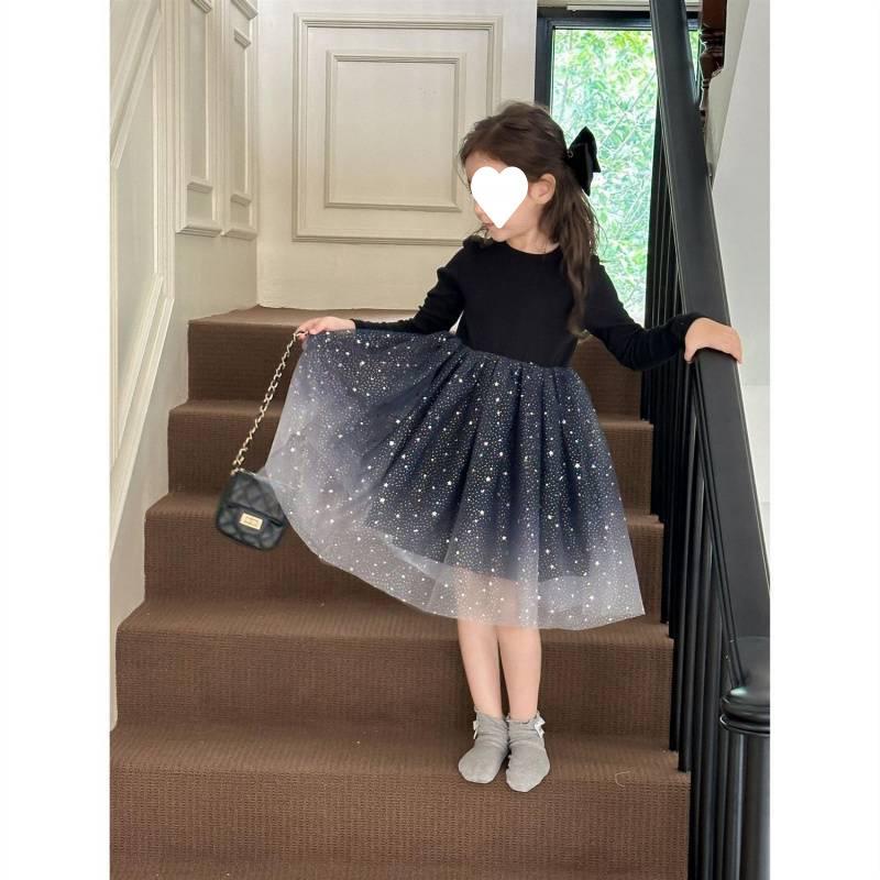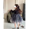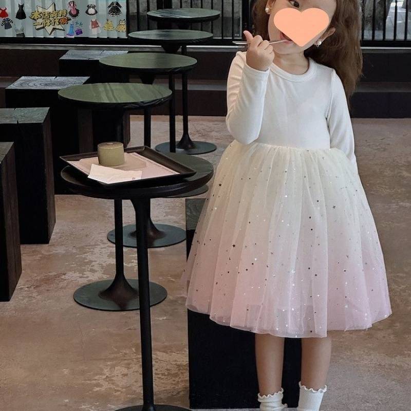 Vestido de niña, otoño e invierno, manga larga, brillante, princesa, ropa de actuación para bebé, estilo princesa coreano.