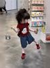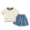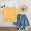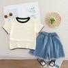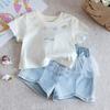 Traje de verano para niñas 2025 Nuevo estilo Ropa casual de verano de manga corta para niños y bebés Shorts de mezclilla Conjunto de dos piezas a la moda