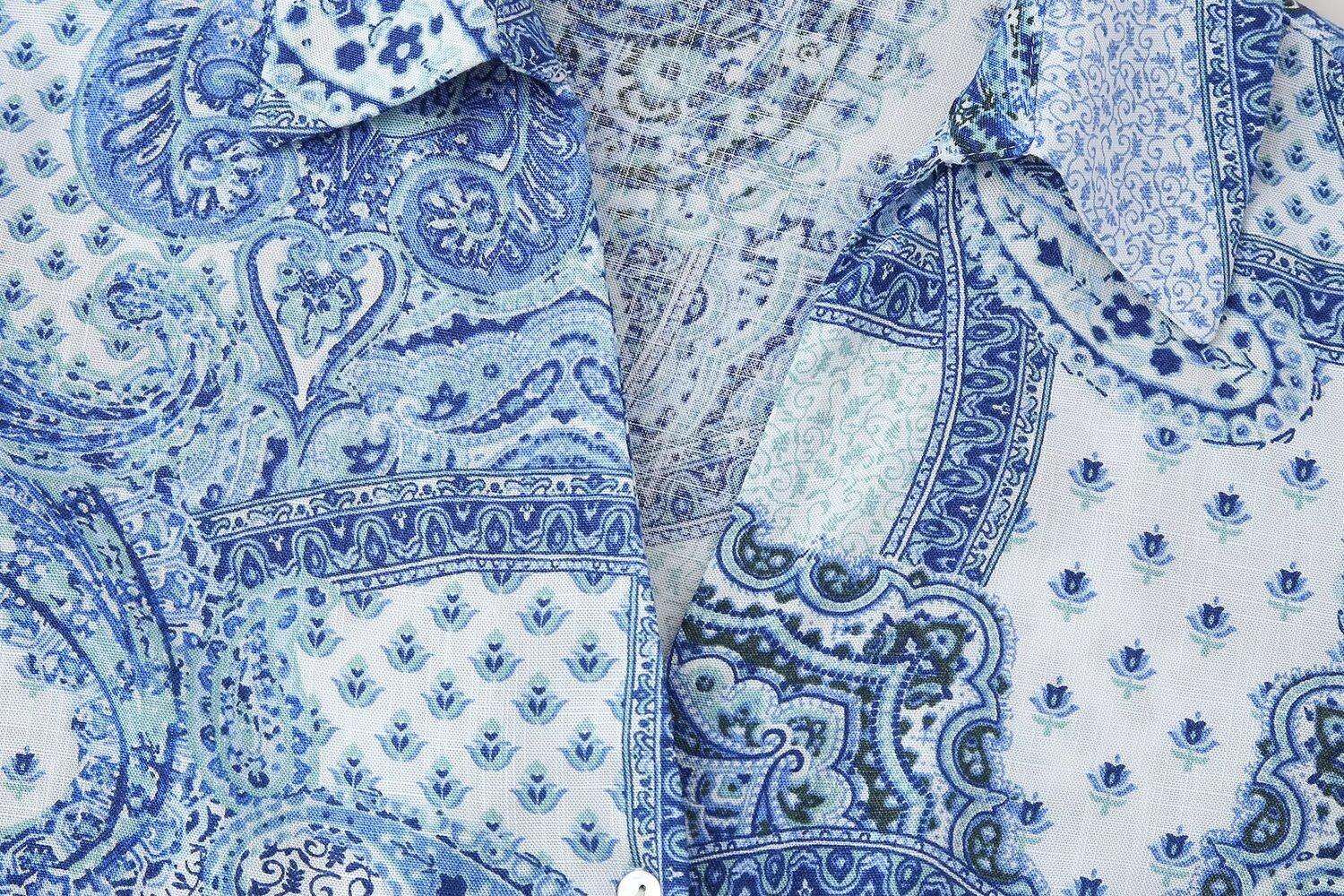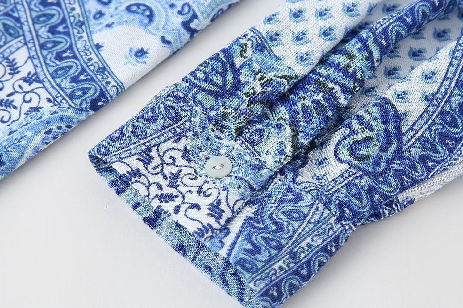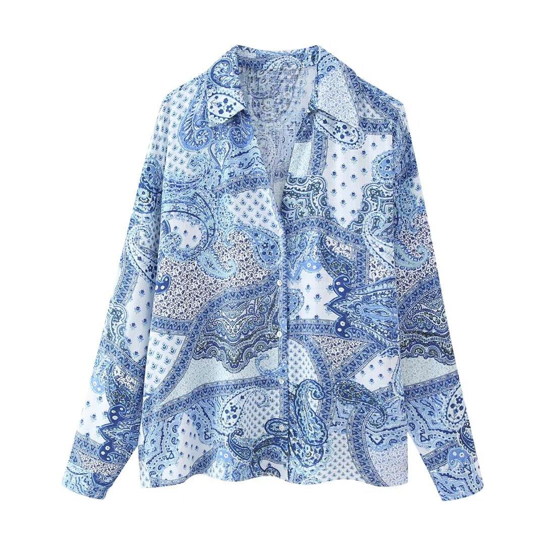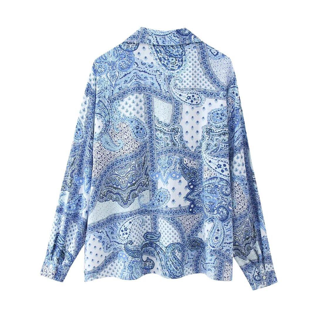 Compra Verano 2024 Nuevo Moda Europea y Americana Transfronteriza para Mujer Camisa Azul de Manga Larga + Pantalón Recto Estampado al por mayor en Joom.pro