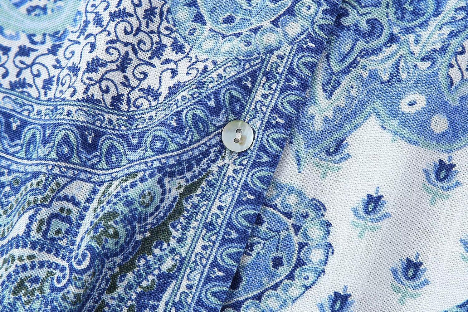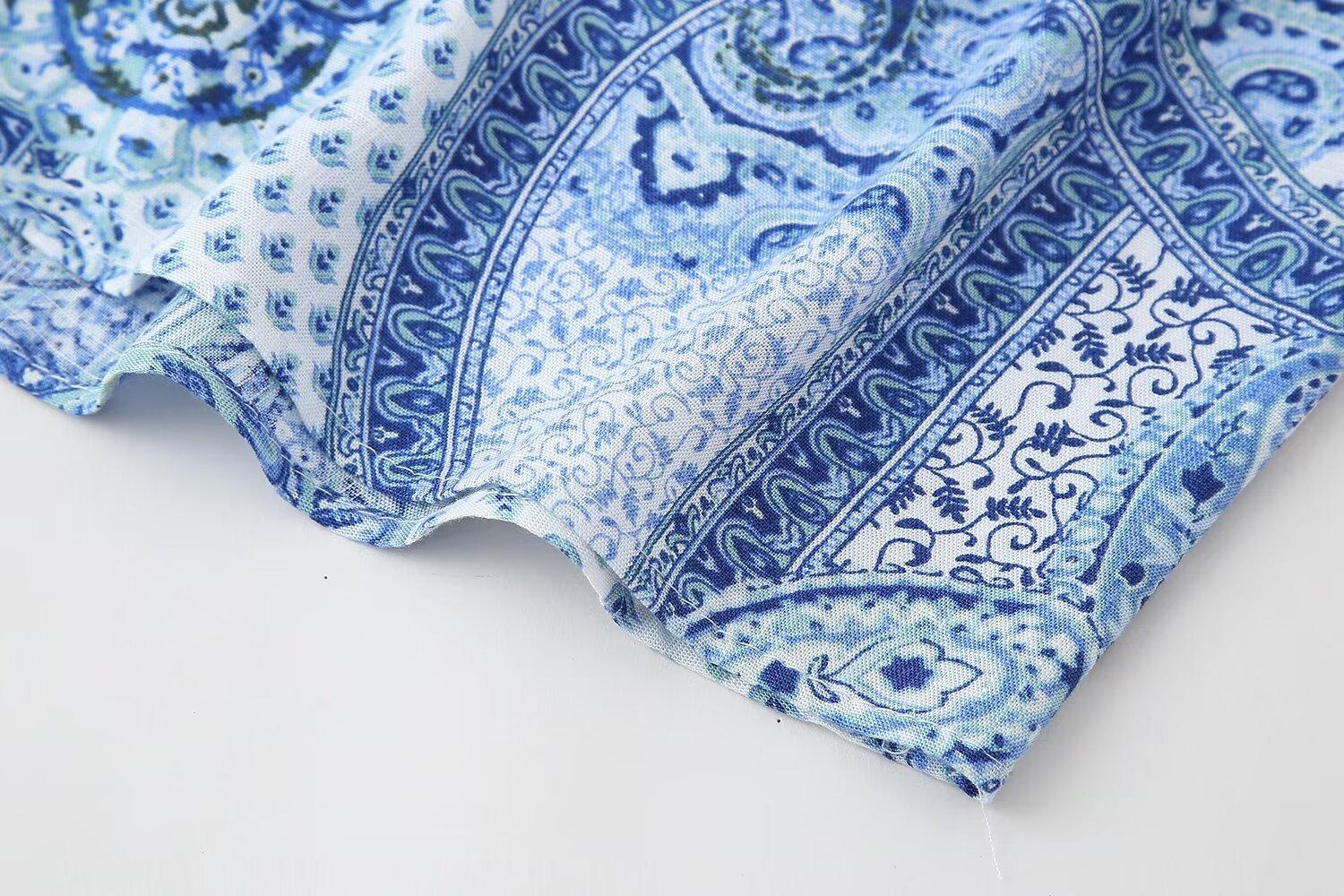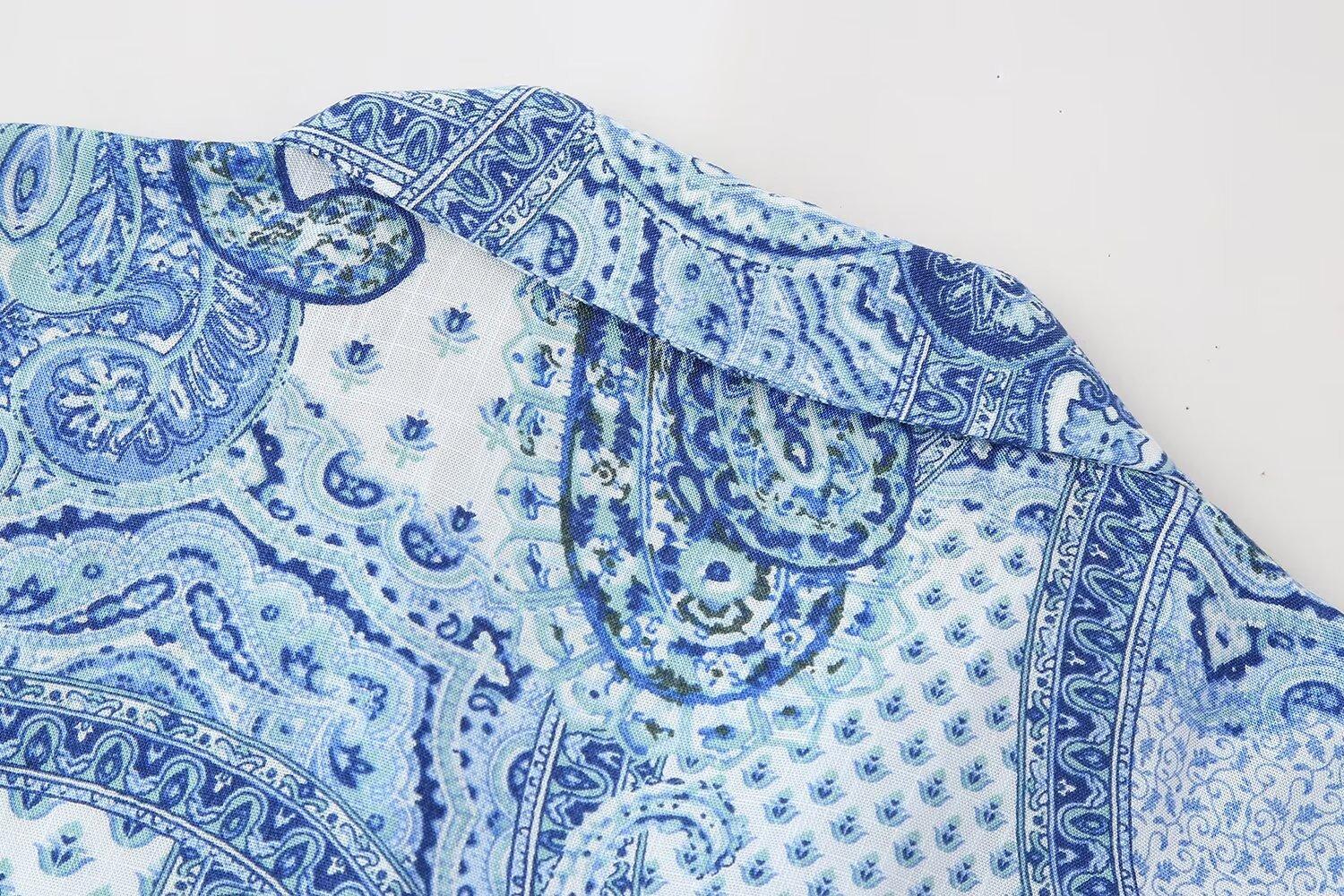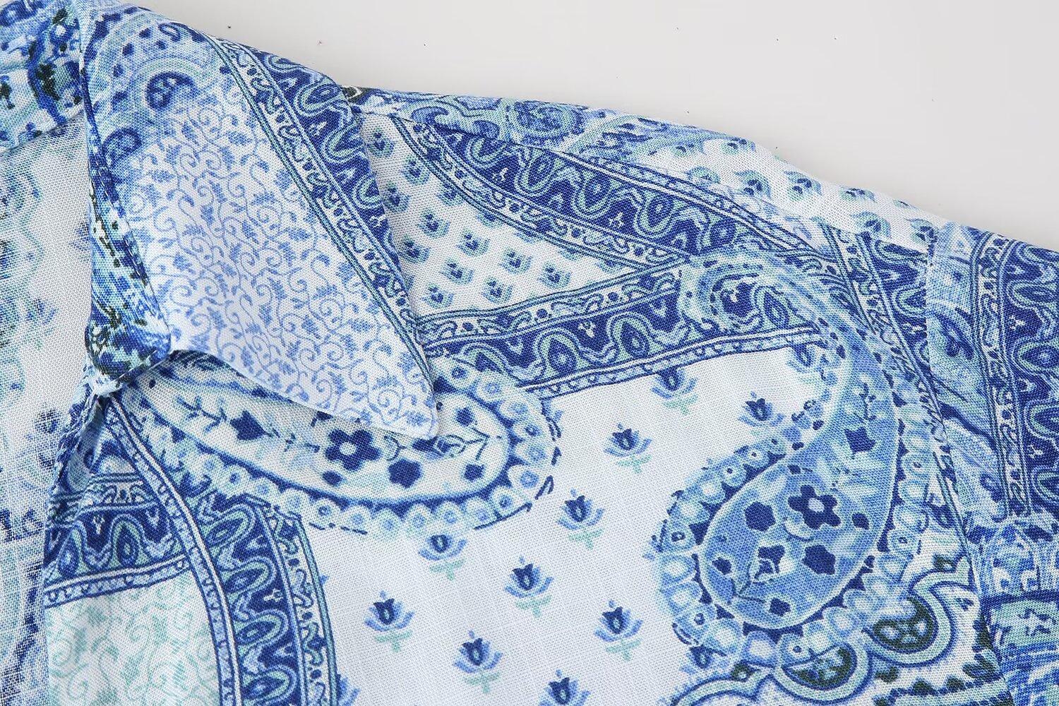 Compra Verano 2024 Nuevo Moda Europea y Americana Transfronteriza para Mujer Camisa Azul de Manga Larga + Pantalón Recto Estampado al por mayor en Joom.pro