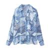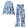 Verano 2024 Nuevo Moda Europea y Americana Transfronteriza para Mujer Camisa Azul de Manga Larga + Pantalón Recto Estampado