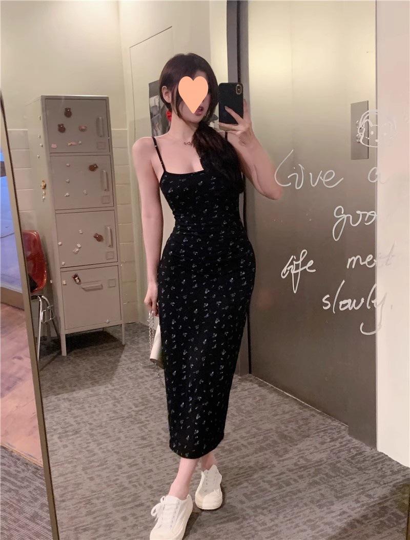 Compra Vestido negro con estampado floral de moda para mujer, nuevo vestido de verano de las Spice Girls, ajustado, de longitud media, con falda. al por mayor en Joom.pro